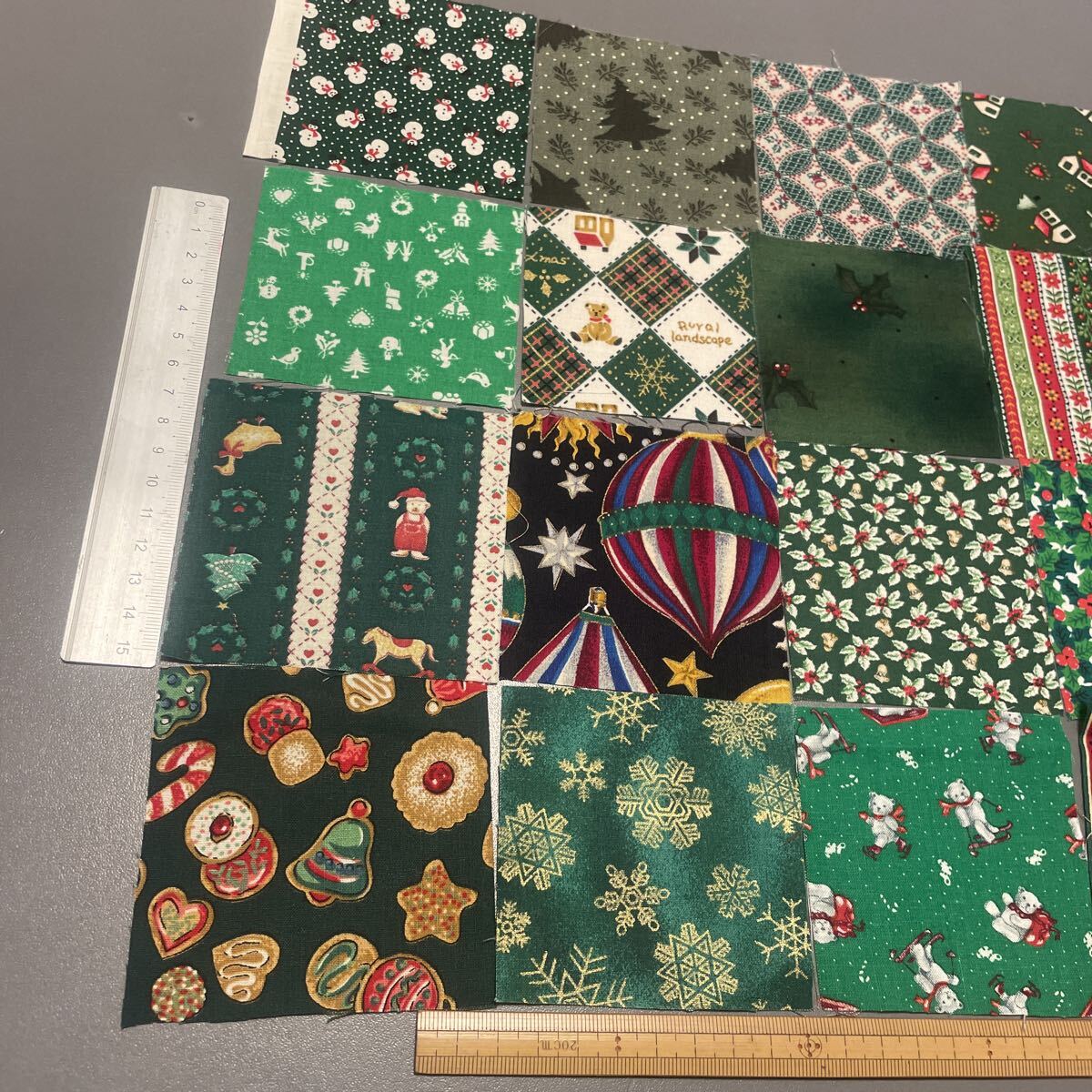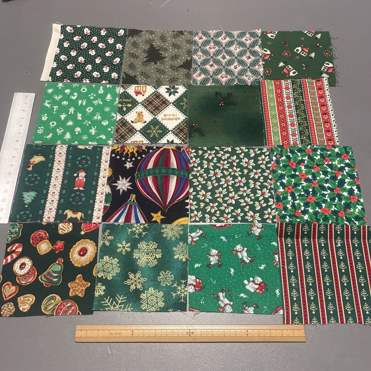 | クリスマス柄 生地はぎれセット サイズ 定規と比較お願いします。 | |||