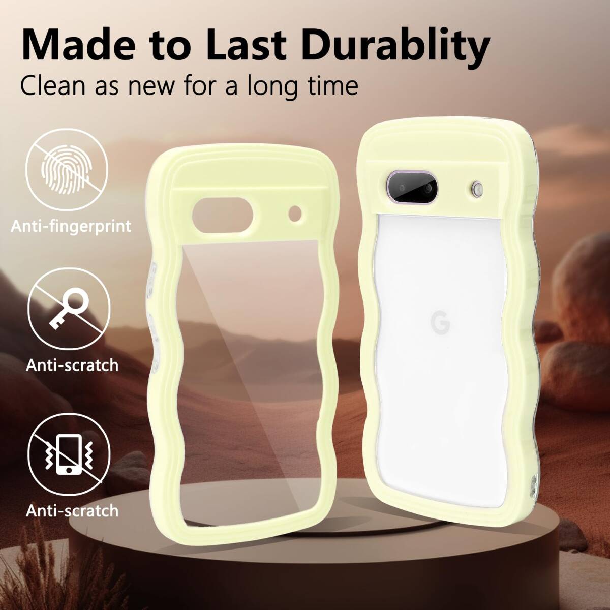 【Newnugds】Google Pixel8A ケース グーグルピクセル8a ケース 韓国 おしゃれ シンプル 波状エッジ 透明 2in1 pixel 8A ケース 創意 個性 超軽量 可愛い 女子向け Pixel8A スマホケース 指紋防止 擦り傷防止 全面保護 ピクセル8a ケース 耐衝撃 衝撃吸収 携帯ケース 人気Pixel8A ケース クリームイエロー