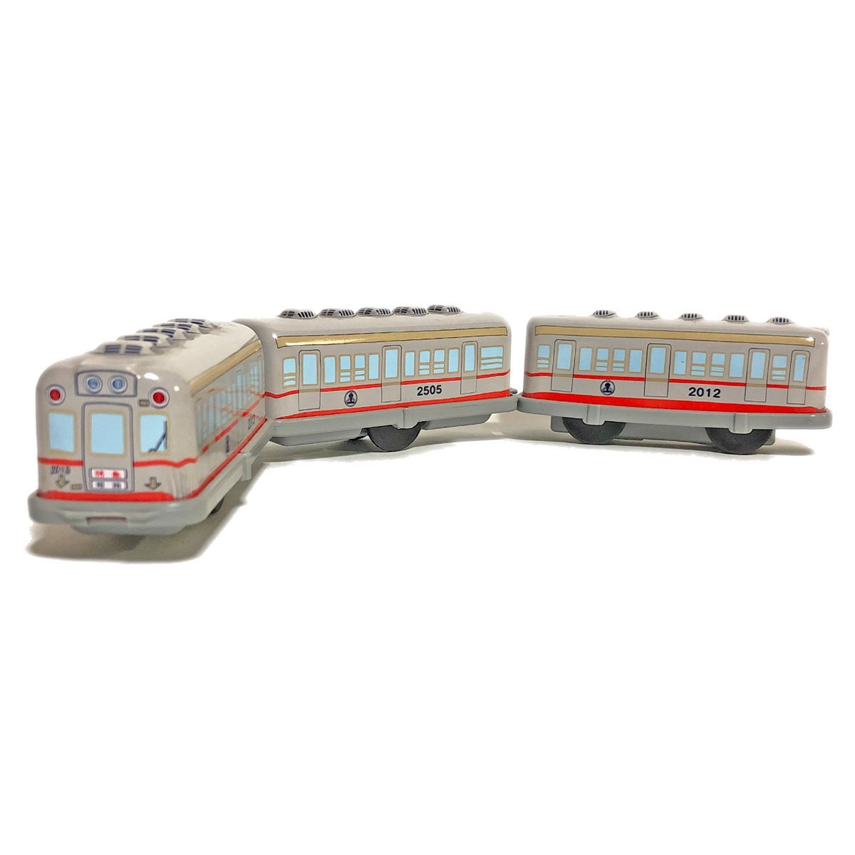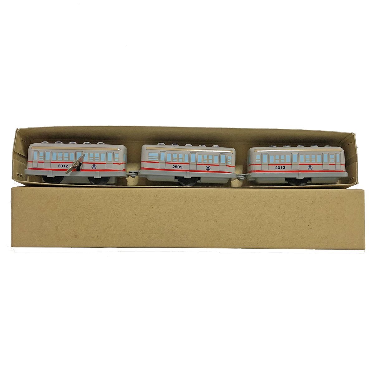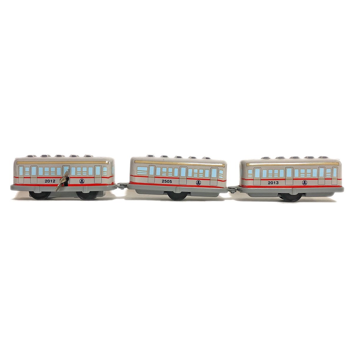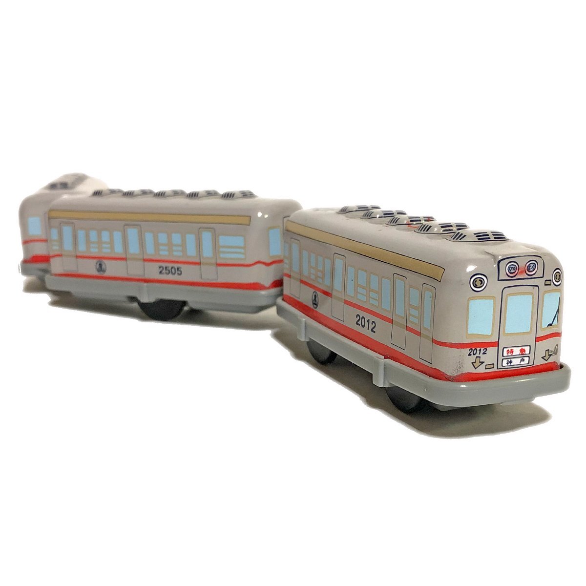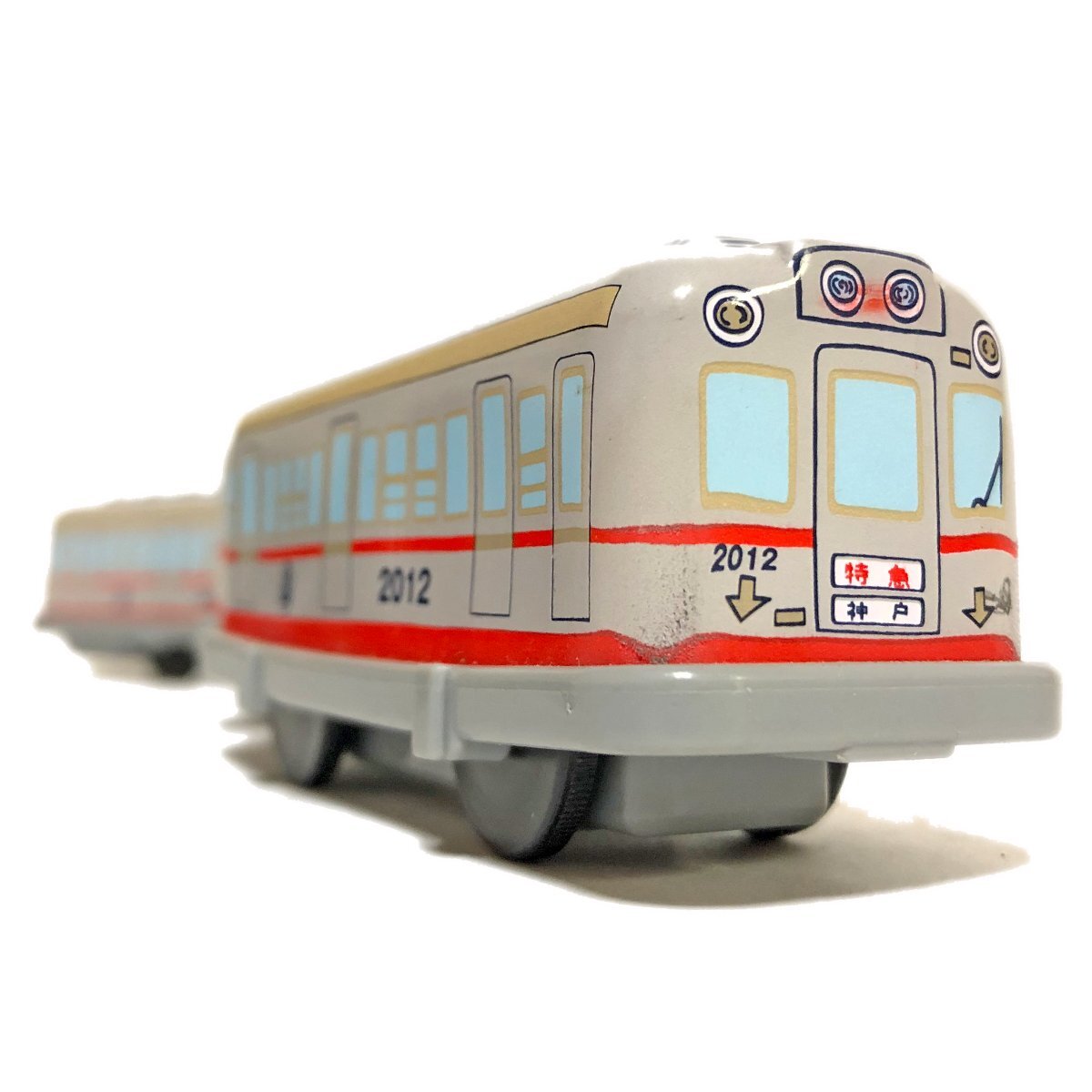 三幸製作所 山陽電気鉄道2000系電車 5次車(アルミカー)2012・2013 列車3連 です。 山陽電気鉄道が1956年(昭和31年)から1963年(昭和38年)にかけ24両が製造し山陽電鉄初のWN駆動方式を採用して製作された19m級高性能電車として有名です。 特にこの2012・2013モデルは第5次車 (アルミカー)として列車に使う素材として試行錯誤の技術を投入し オールアルミ車両として1962年(昭和37年)~1990年(平成2年)に廃車となるまで現役で走り続け、 廃車後も歴史的・産業考古学的な価値が高いことから東二見車庫の構内に保管されており、 2000年代以降は整備されてイベント時に公開されることも多く、事故・災害等の訓練でも活用されている、レア車両モデルです。 その山陽電気鉄道2000系電車 5次車(アルミカー)2012・2013列車3連を、同じく日本を支えたブリキ玩具の技術力で ブリキ玩具を作らせたらこの人と言われる東京葛飾 三幸製作所のモデルです。 電気が光ったり汽笛が鳴ったりはしませんが、電池も不要のゼンマイ駆動で、小さなお子様にも安心して遊んでいただけます。 シャーシ、ホイールはプラスチックですがブリキの車体は細かいディティールまでプリントされ 金属ならではの質感は独特の雰囲気に仕上がっています。 箱は付きますが無地の厚紙製です。 |