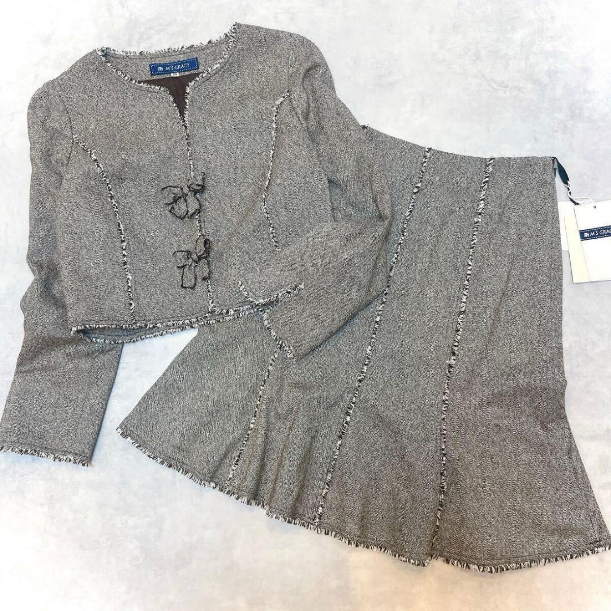ツイード調デザインが上品なセットアップです。