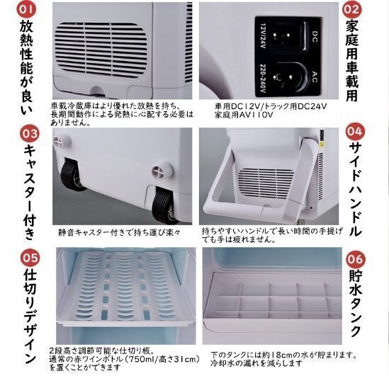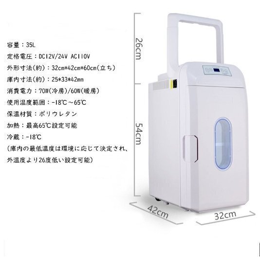車載冷蔵庫 35L ポータブル冷蔵庫 -18℃~+65℃調整 持ち運べる便利 キャスター/ハンドル付 家庭車載用 立ち置き/平置き DC12V/24V AC110V
