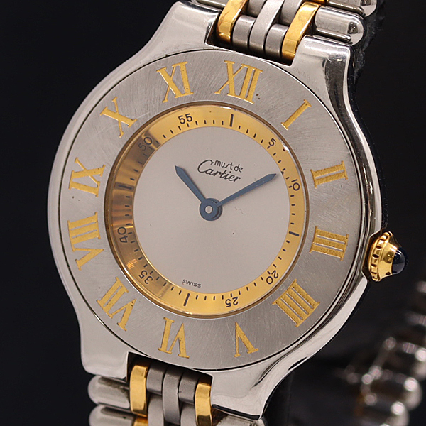1円 稼働 カルティエ マスト21 ヴァンテアン 1330 QZ シルバー文字盤 メンズ腕時計 4175600 11APT SMZ
