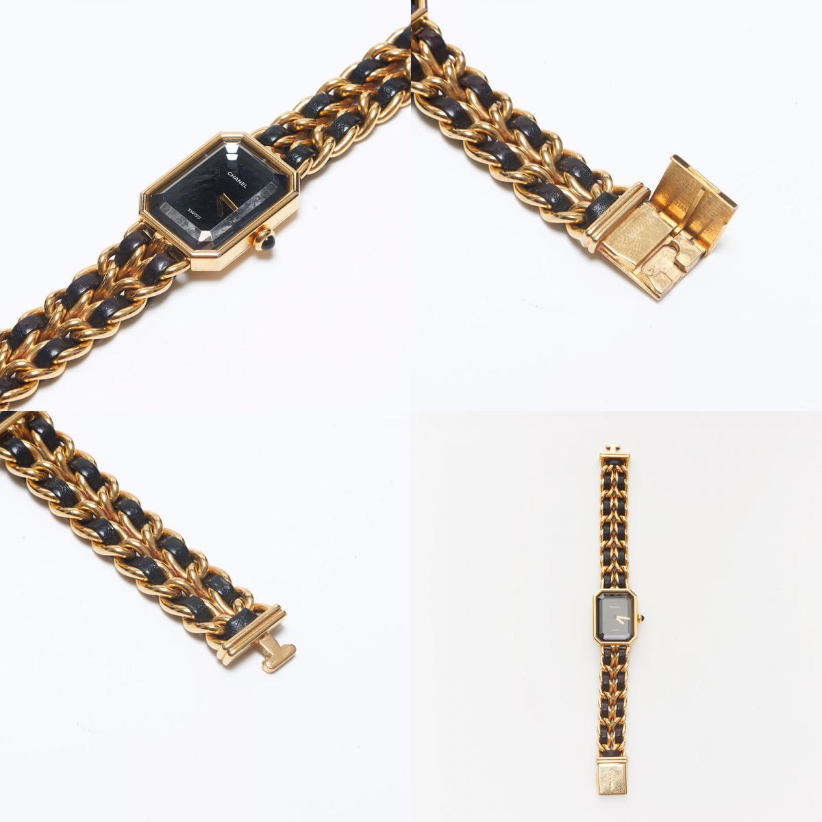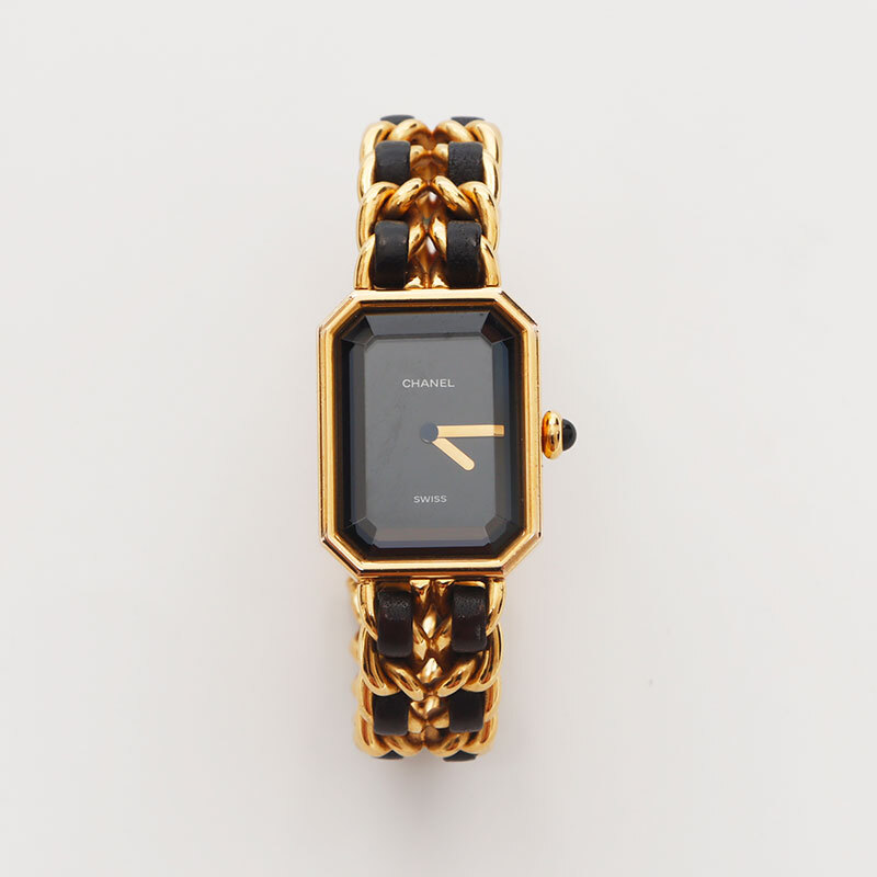 極美品 CHANEL プルミエール 黒文字盤 Sサイズ 腕時計 ゴールド ブラック