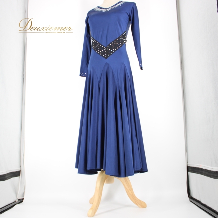 | 【商品名】社交ダンス衣装 ドレス 【サイズ】 平置き実測:総丈約111cm(裾~肩部まで)、肩幅約36cm、身幅約37cm、ウエスト約32cm~ ※実測の為、多少の誤差はご了承ください 【仕様】 ・伸縮性有り ・肩パッド無し ・胸パッド無し 【品質表示】 ポリエステル ------------------------------------ 【ポイント】 ▽深みのある青色ドレス ▽ラインストーン付き ------------------------------------ 【撮影時使用トルソー】 種 類:女性用トルソー9号 (一般的に使用されるサイズです) サイズ:肩先~床約135cm(身長約160cm)、肩幅約38cm、バスト約86cm、ウエスト約64cm、ヒップ約84cm |