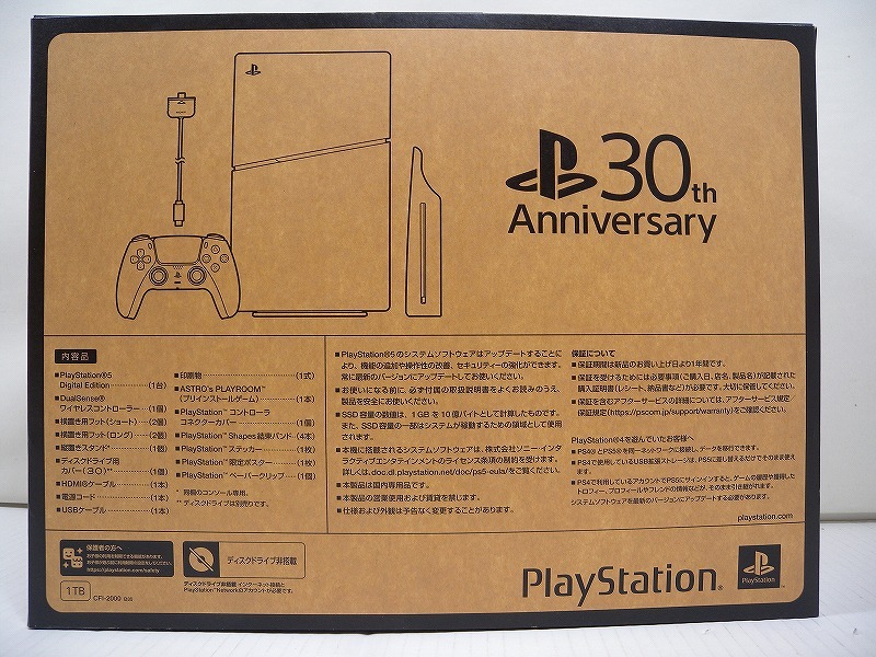 ご覧頂きありがとうございます。 ※よくお読みください。 複数落札して頂いてもこちらの商品とは同梱は致しません。 この場合個別発送になりますのでご了承下さい。 【商品名】 ★PS5本体 PlayStation 5 30周年アニバーサリー リミテッドエディション CFI-2000-B30 グレー 【状態】未使用 こちら譲渡品ですので購入時期、保管状態は不明です。 未使用品のため中身の撮影が出来ません。 JANコードから検索した画像を掲載しますのでイメージの参考にしてください。 新品ではありません。 あくまでも人手に渡った商品であり、保管状態にあった中古品ですので 御了承の上入札をお願い致します。 【内容品】 内容品は画像で御確認下さい。 下記でご案内しています発送方法になります。 他の発送方法は受け付けませんのでご了承ください。 【その他】 詳しくは画像にてご確認頂き、よろしければぜひご検討くださいませ♪ 丁寧に梱包し、配送させて頂きます。 不明な点は、お気軽に入札前にご質問ください。 | |||