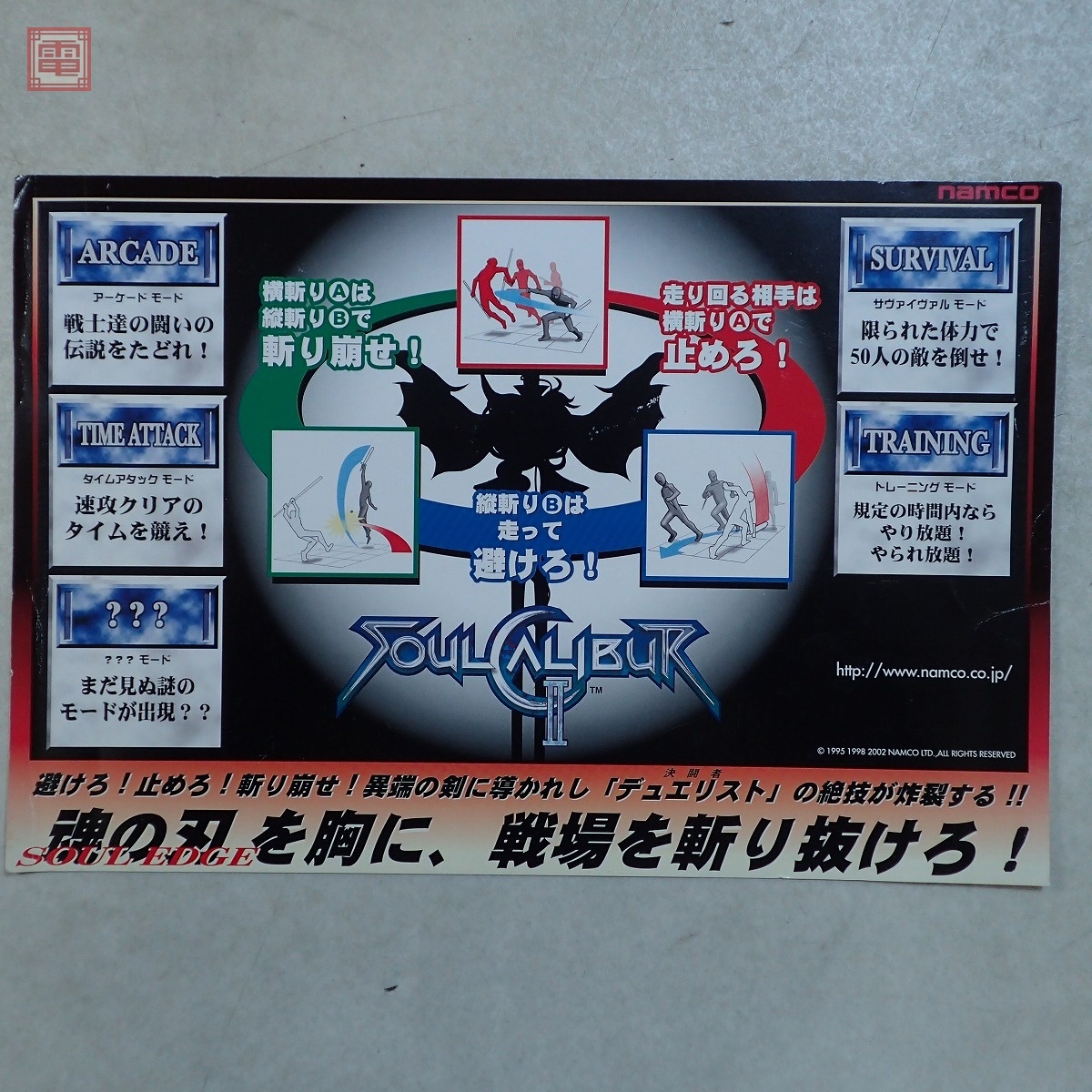 インスト ナムコ/NAMCO ソウルキャリバーII SOUL CALIBUR 2 ポップ付 ■全体的に折れ、傷み、汚れがあります。 ■付属品: ・取説…純正(折れ、傷み、汚れあり) ・帯…純正(折れ、傷み、汚れあり) ・ポップ…純正(折れ、傷み、汚れあり) ・注意シール…純正 ■写真のものが全てです。付属物の有無や状態については写真からご判断ください。 ■付属物については細かいチェックはしておりませんので、万が一、欠品があったり余計な物が入っていたとしてもご了承ください。 ■商品到着後、当店の保証期間中は、商品及び箱や取説、付属品などを1つでも廃棄や破損をしないようにお願い致します。廃棄や破損をした場合、商品に問題があった場合でも対応や返金などの対処ができなくなります。 ■商品によりますが、発売されてから10年以上経過している中古品である事をご理解頂いた上でご入札をお願い致します。なお、新品や美品、また特記事項がある場合は別途明記します。 | |||