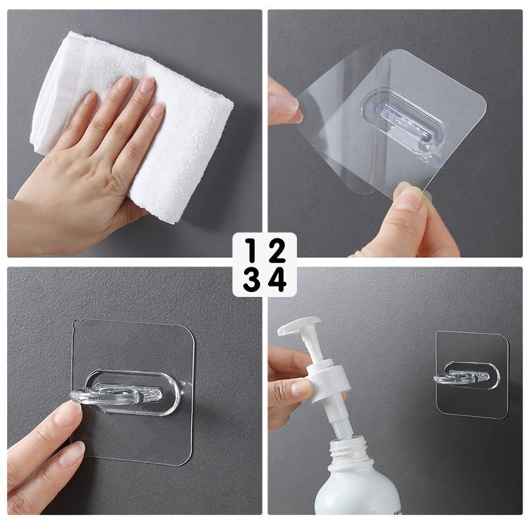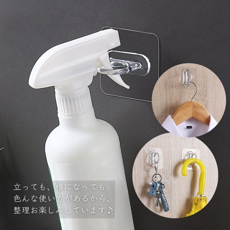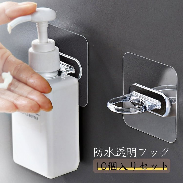 ◆壁掛けフック 10個セット お風呂ラック 浴室 バスルームラック 透明 防水 ボディソープ シャンプー ボトルホルダー 強力粘着 洗面所 車 リビング オフィスなどにも MDBFS10S