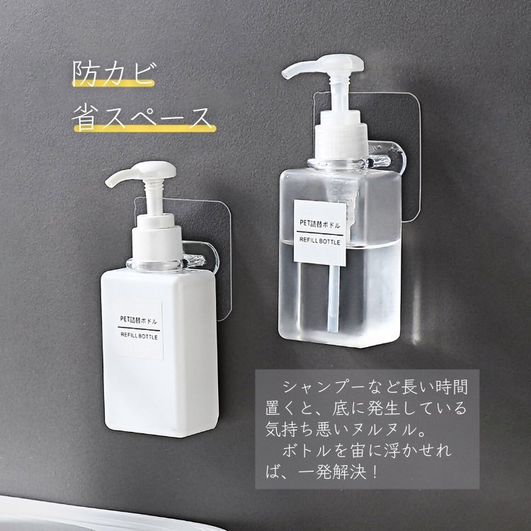 ボディソープーやハンドソープ、シャンプー、台所用洗剤、洗顔クリーム、化粧落とし、洗濯用洗剤、カミソリ、傘、鍵、はさみなどを入れるボトルにも、シャワーボールやブラシなど小物を掛けたい時にもご利用いただけます。