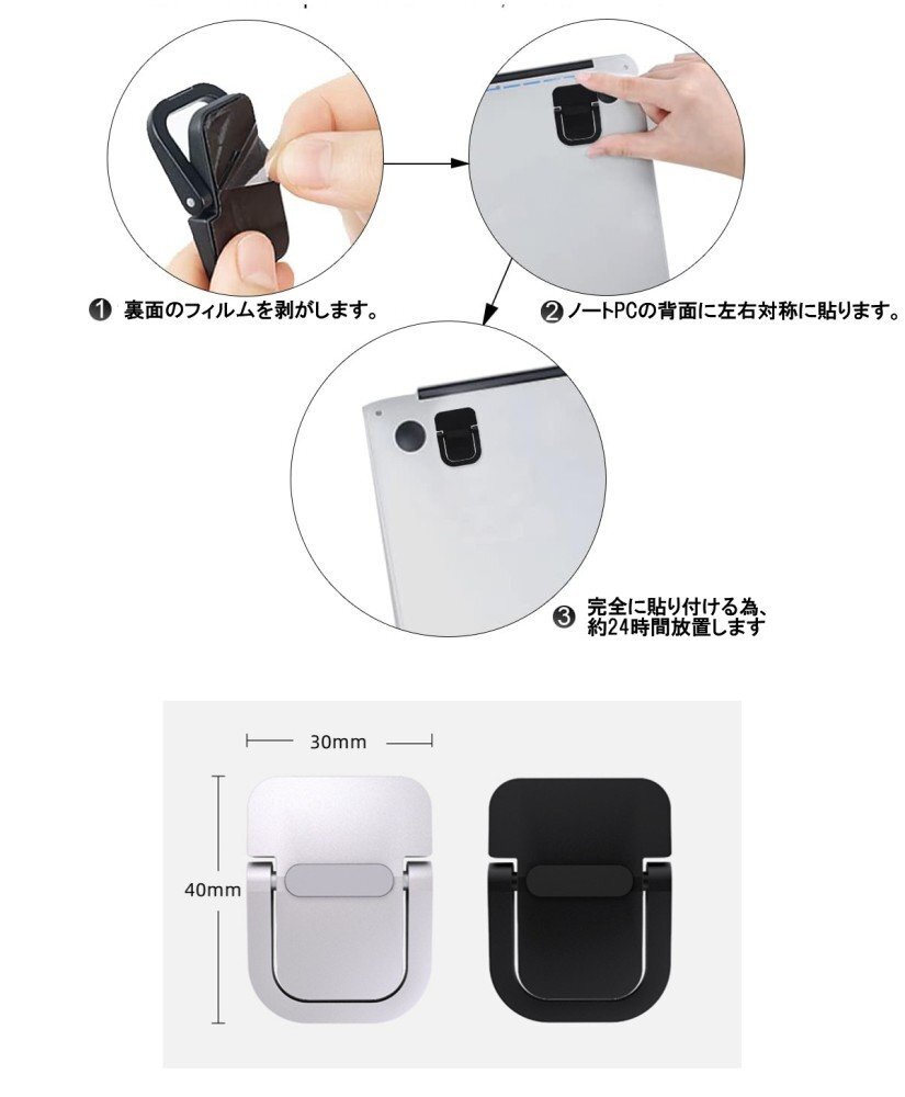 【vaps_6】ミニ ノートパソコンスタンド 貼り付け型 2個セット ブラック ノートPC用 亜鉛合金 折り畳み 姿勢 視線 角度 放熱 送込