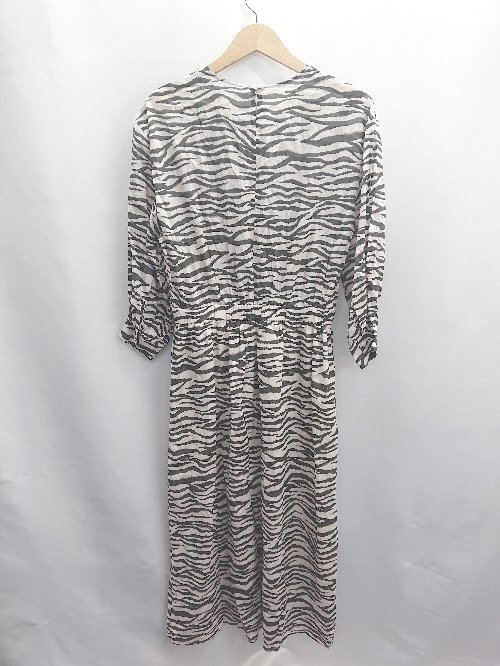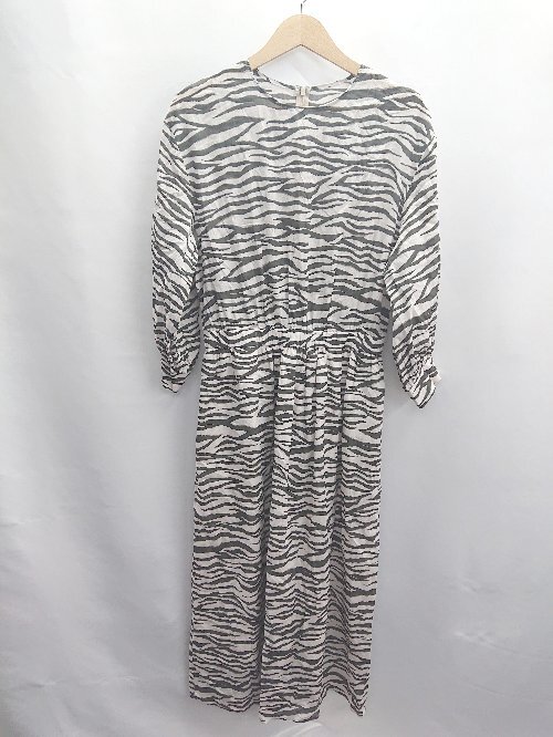 ◇ ⊂ JOURNAL STANDARD ジャーナルスタンダード ゼブラ柄 長袖 ロング ワンピース サイズ表記なし ダークグレー ホワイト レディース E