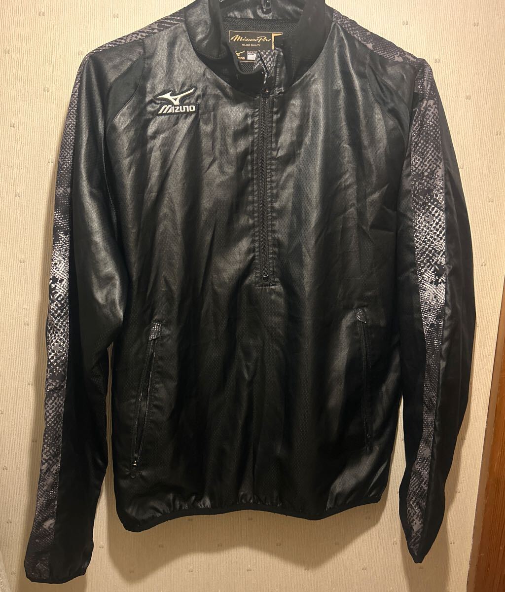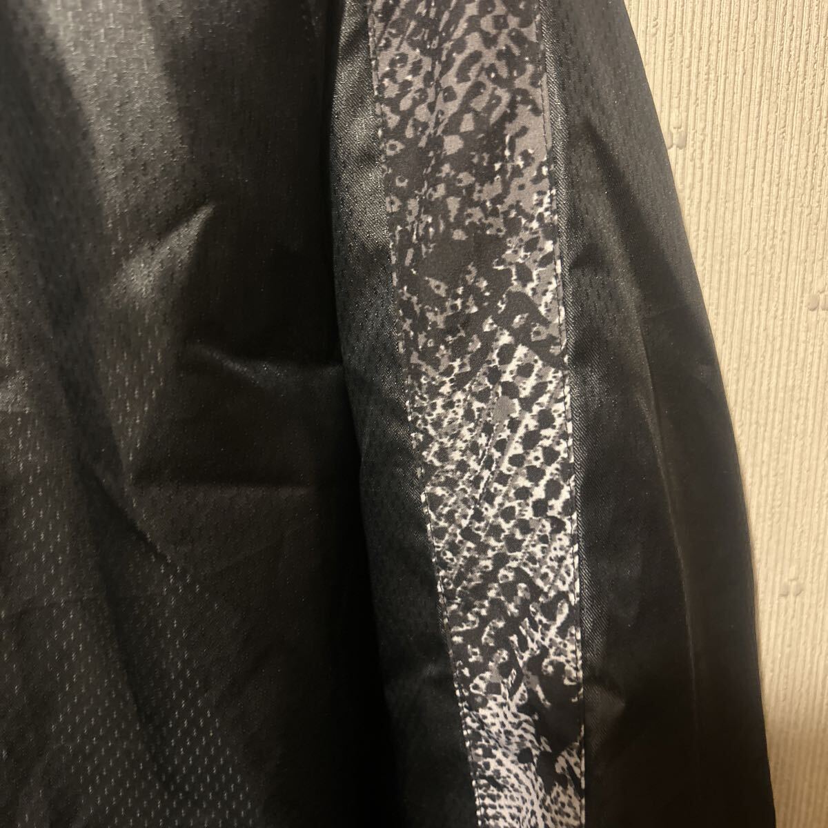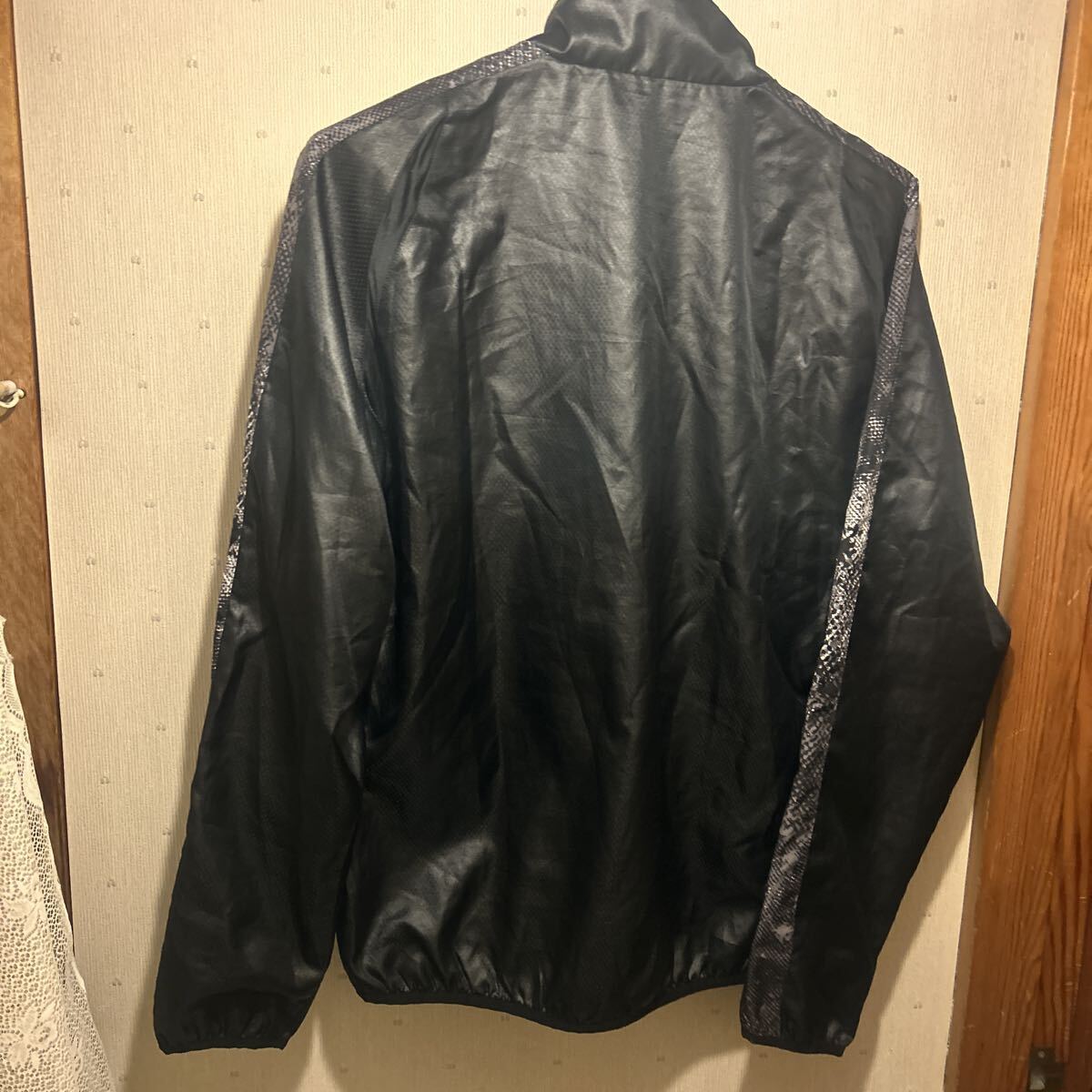 1回だけ着用し自宅保管してありました。袖にパイソン柄のラインが入ったカッコいいデザインのウインドブレーカーです♪サイズは表記Lサイズで平置き採寸で身幅58着丈67。発送はレターパックで全国にて。激安の千円スタートです♪