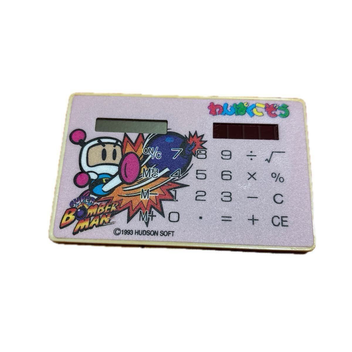 ハドソンソフトが1993年に製造した「ボンバーマン」キャラクターのカード型電卓です。この電卓は、太陽電池式ですが,おそらくジャンクかと思われます。