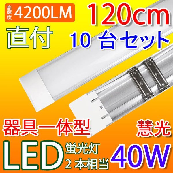 LED 蛍光灯 器具一体型 10本セット 40W型 直付 昼光色 ベースライト 100V用 薄型 工事必要 it-40w-10set