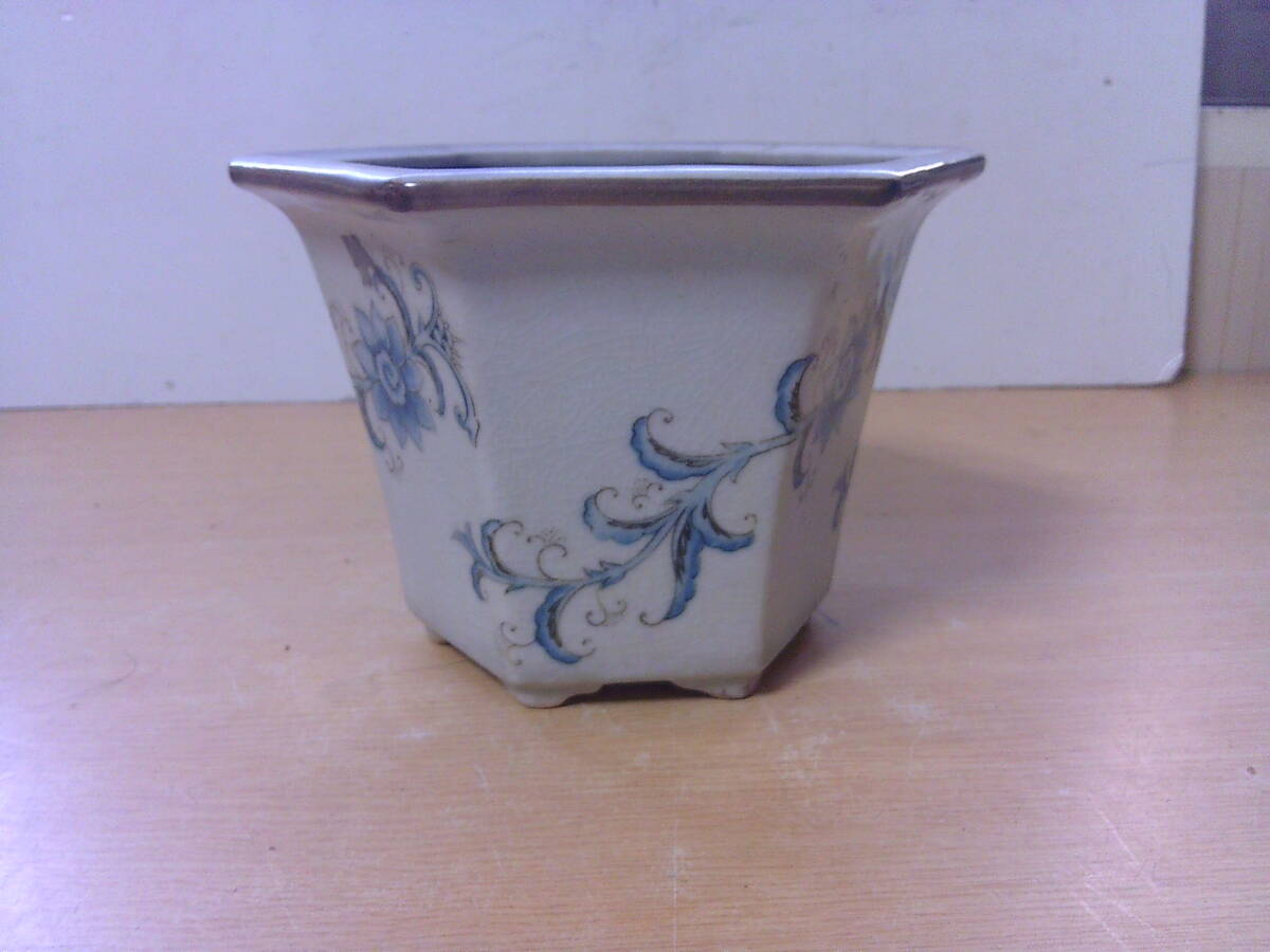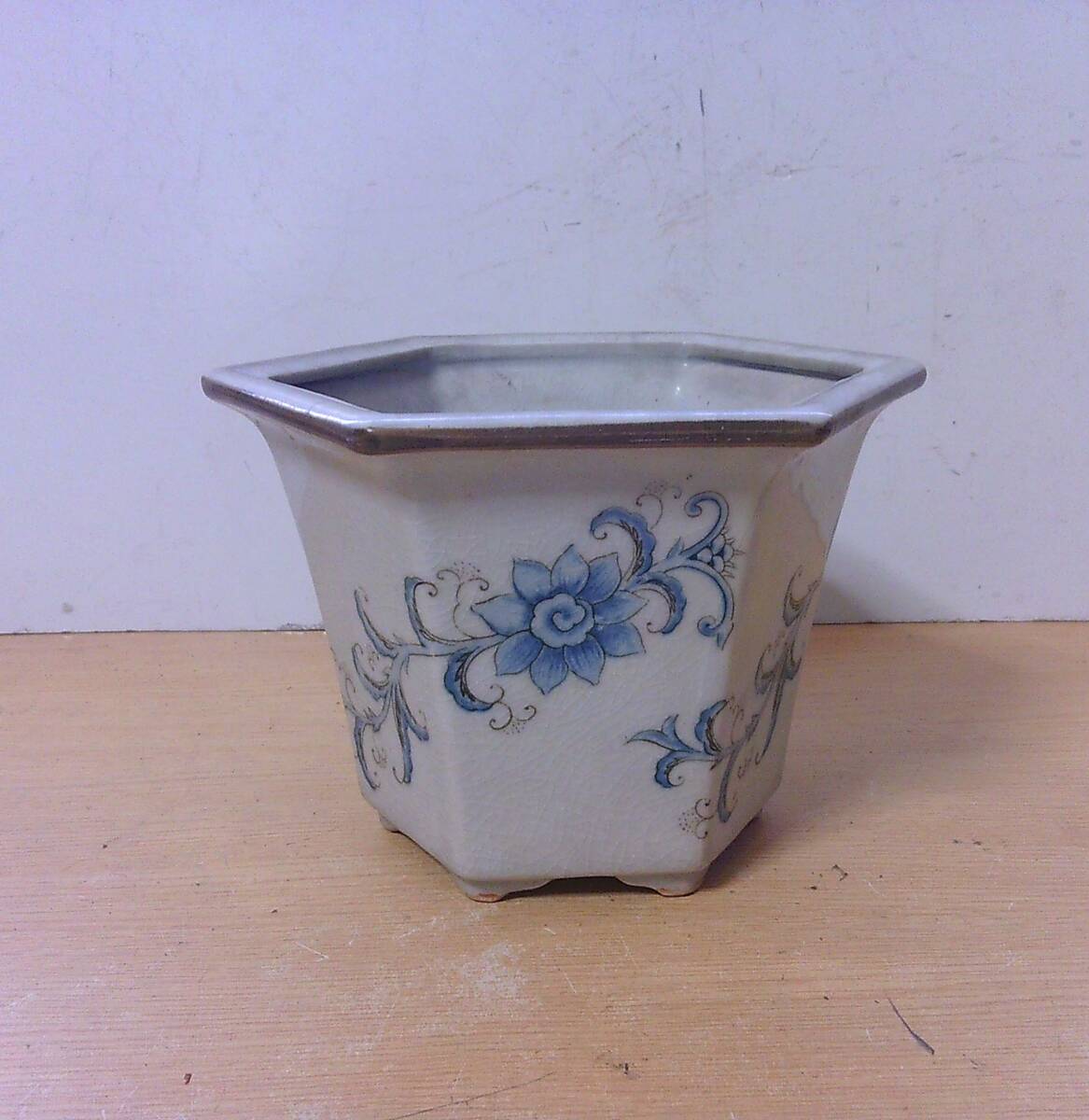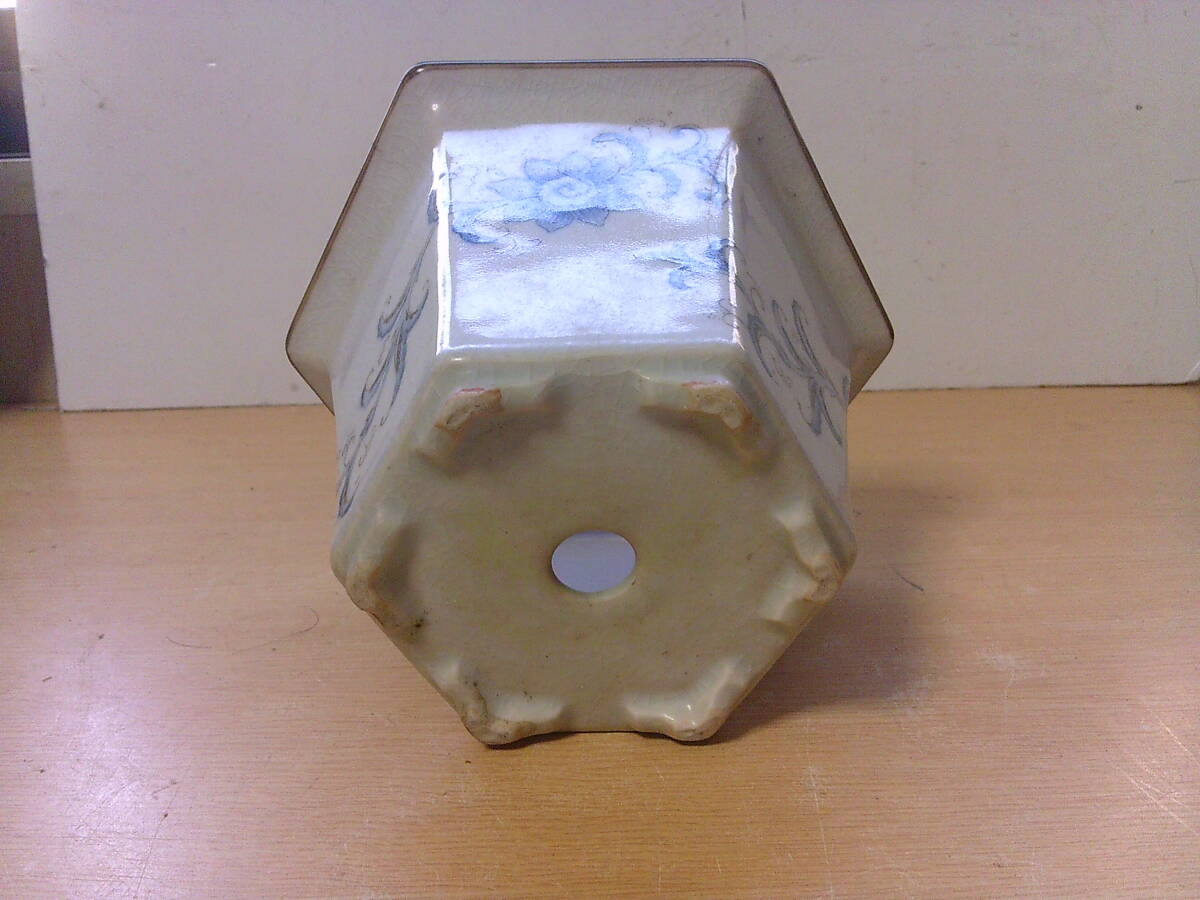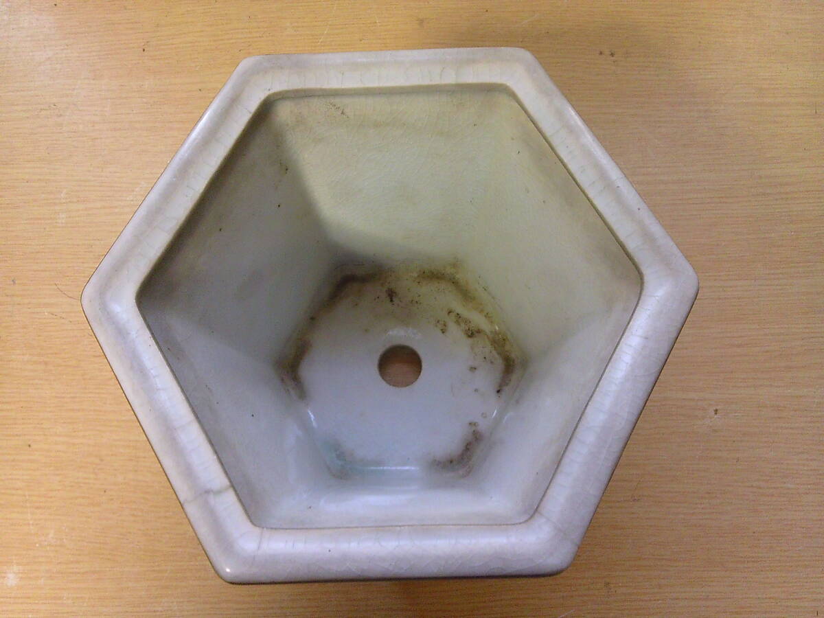 ■ く-999 大正 昭和期 蘭鉢 中古 六角鉢 植木鉢 盆栽鉢 ※最大)高12cm 幅17.9cm 奥15.7cm 重さ535g