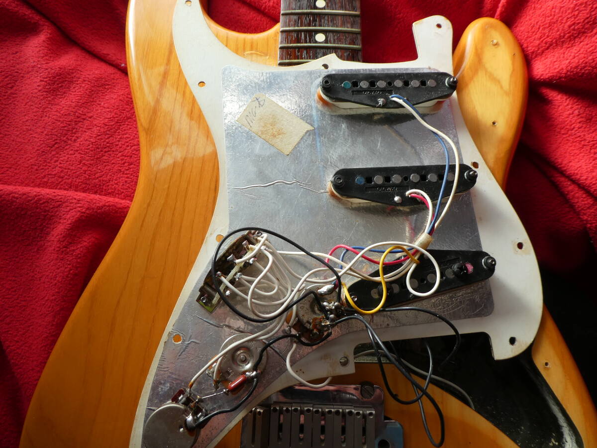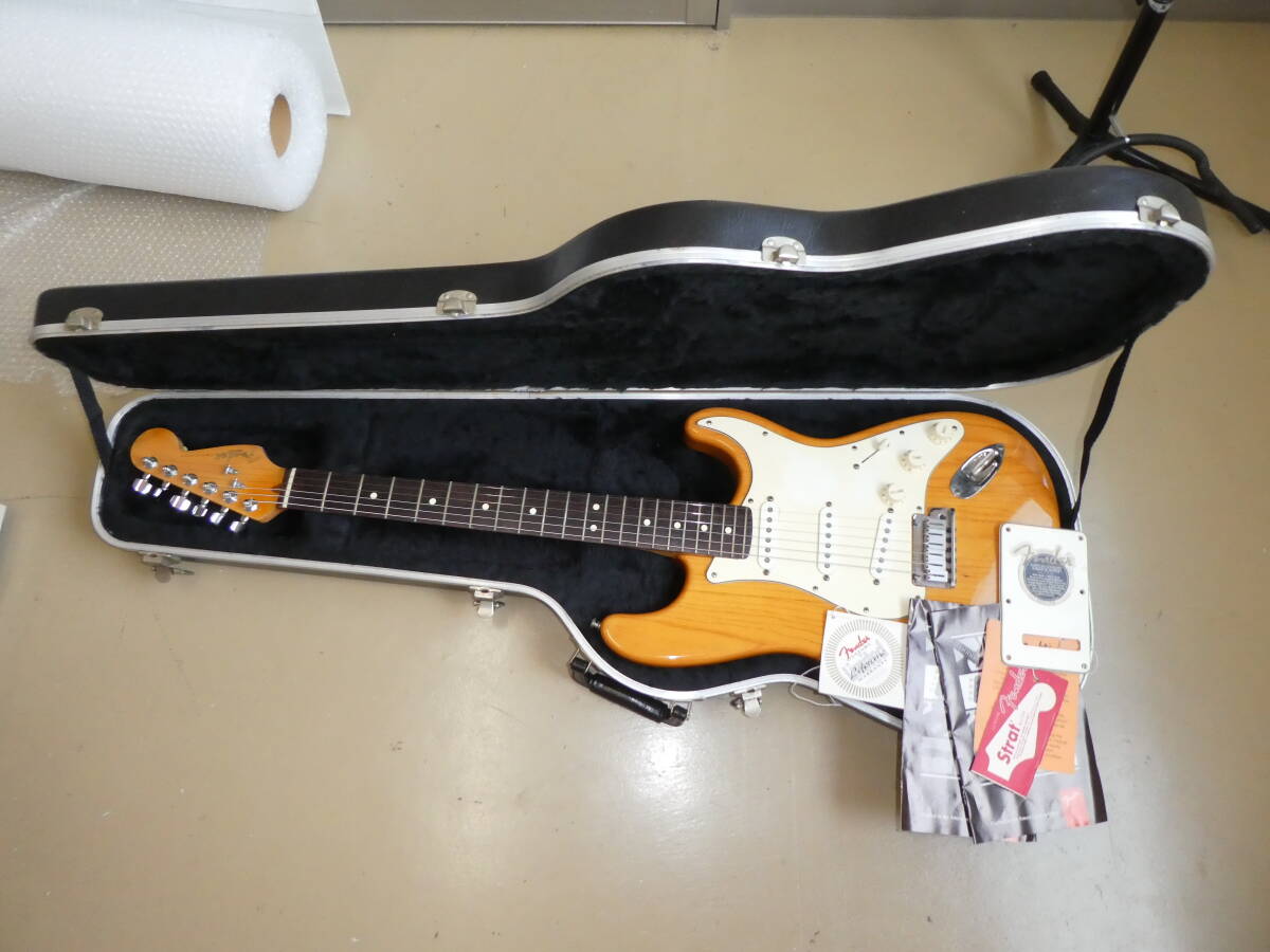 ギターメンテナンス素人の私が、此方でフェンダーUSAのパーツとして出品されていた物をひっかき集めて、組んだものです。キズや汚れ、錆など多々有ります。重量は持って体重計に乗ったところ、3.8kgです。トレモロアーム、六角レンチ有りません。その他此方の気が付かない不具合、有るかもしれません。一応、音は出ました。完全ジャンク、画像で判断できる方の入札をお願いいたします。画像のハードケースに入れてプチプチを巻き発送させていただきます。ハードケースの鍵は有りません。お約束の3Nでお願いいたします。