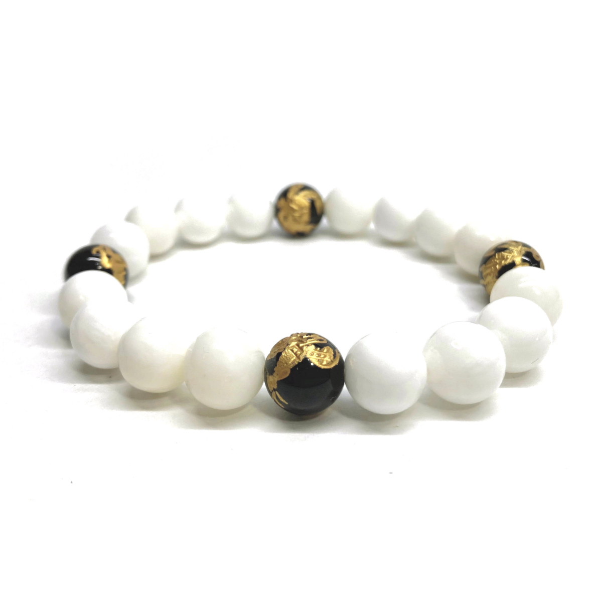 10mm 四神獣金彫オニキス×ホワイトオニキス パワーストーン ブレスレット天然石 運気上昇 開運 金運 恋愛運 青龍 白虎 玄武 朱雀 ☆
