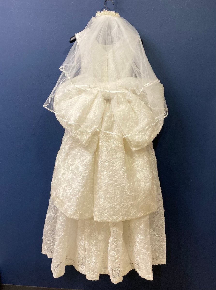【20893Q069】ウェディングドレス ハンドメイド ノースリーブ ベール グローブ ドレス 白 プリンセスライン リボン 結婚式 衣装 現状品