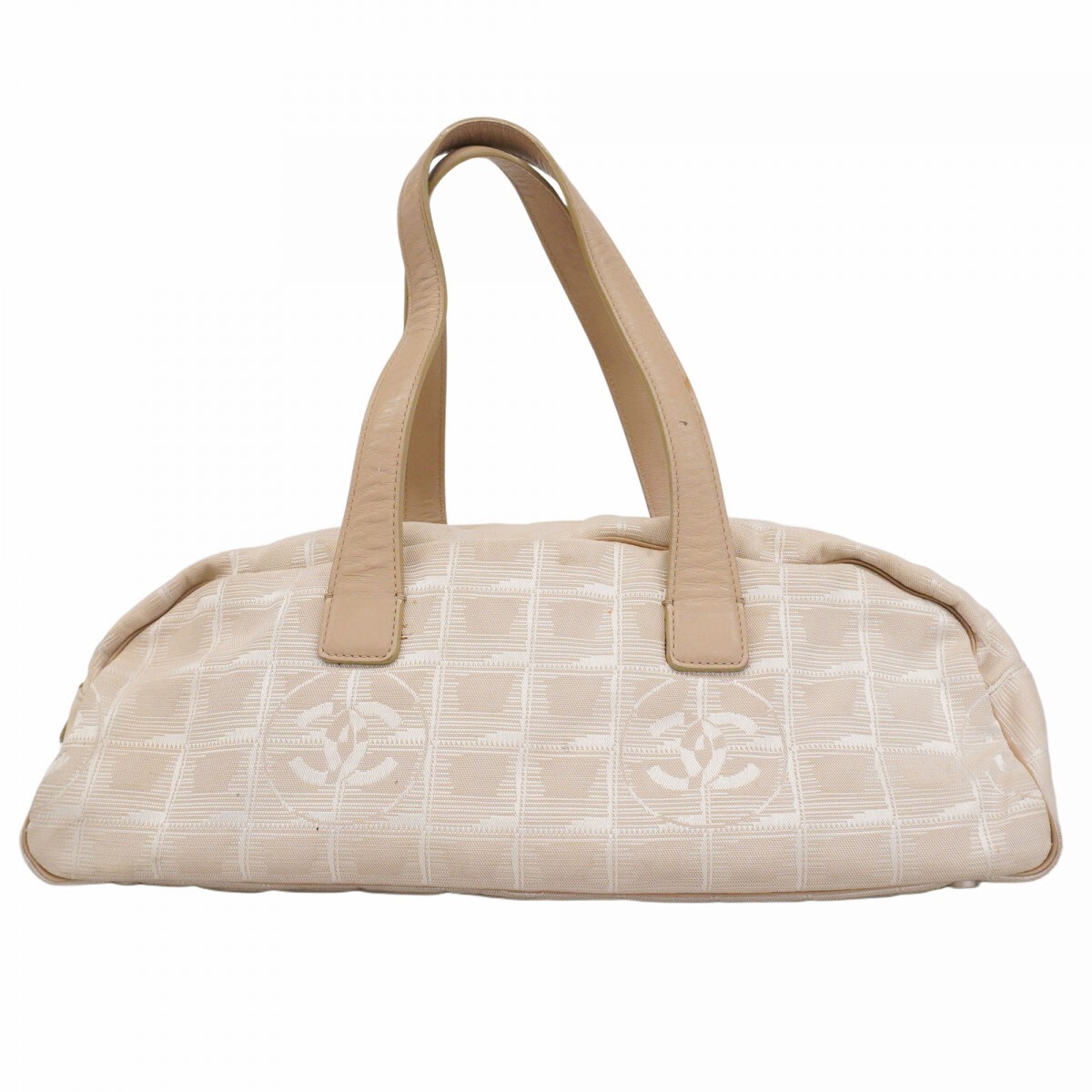 【5of6408】シャネル ハンドバッグ ニュートラベル ナイロン ベージュ シルバー金具【中古】レディース