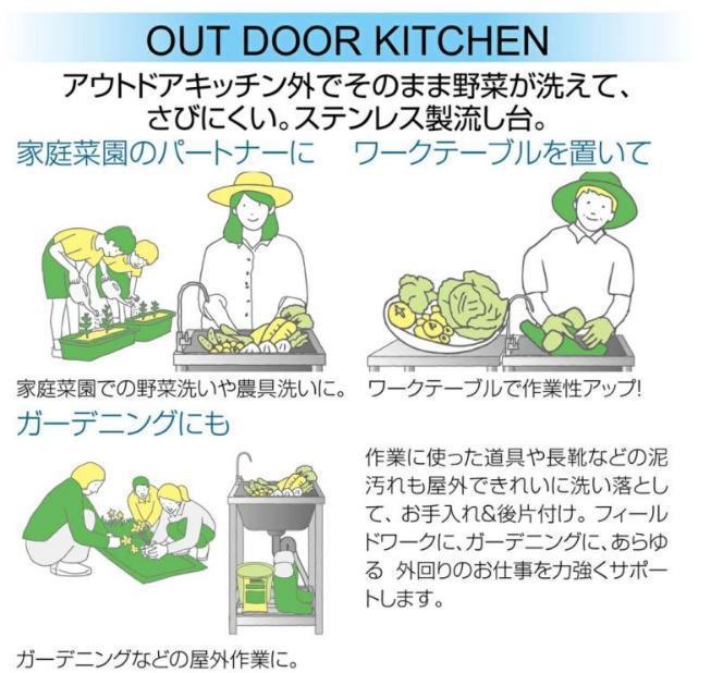 お庭でのガーデニングやBBQなどで活躍する流し台。
