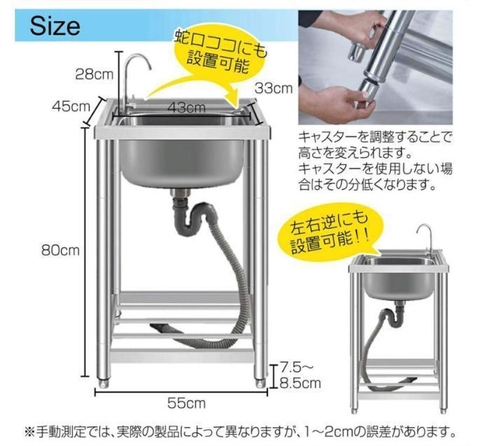 蛇口付きで台所に近い感覚で使え、用具の水洗いや