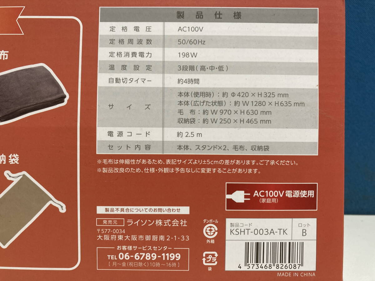 12-M27/1-60 LITHON ライソン くるっとコタツ ぽっぽ KSHT-003A-TK パネルヒーター 一人用 こたつ 毛布・収納袋 タイマー 速暖 省エネ 軽量 | |||