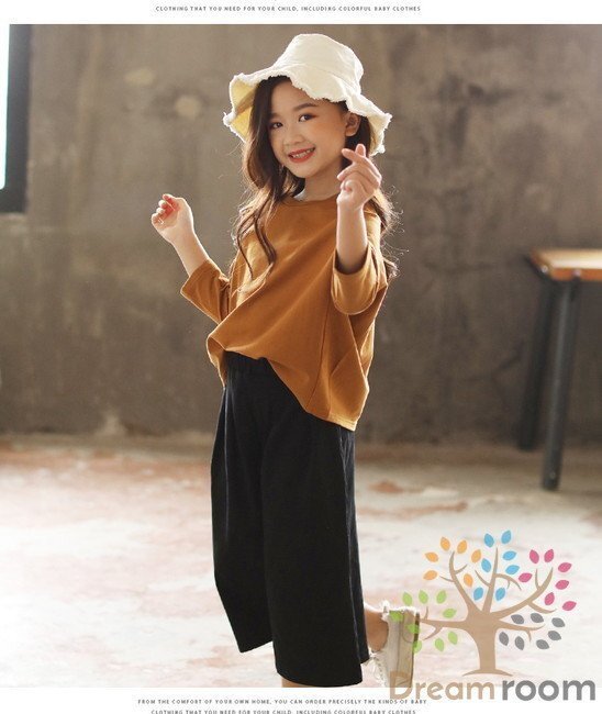 1スタ☆【140cm】ゆるかわ ドルマントップス&ワイドパンツ ガウチョパンツ セットアップ 子供服 女の子 韓国子供服