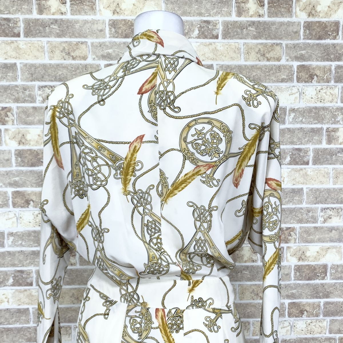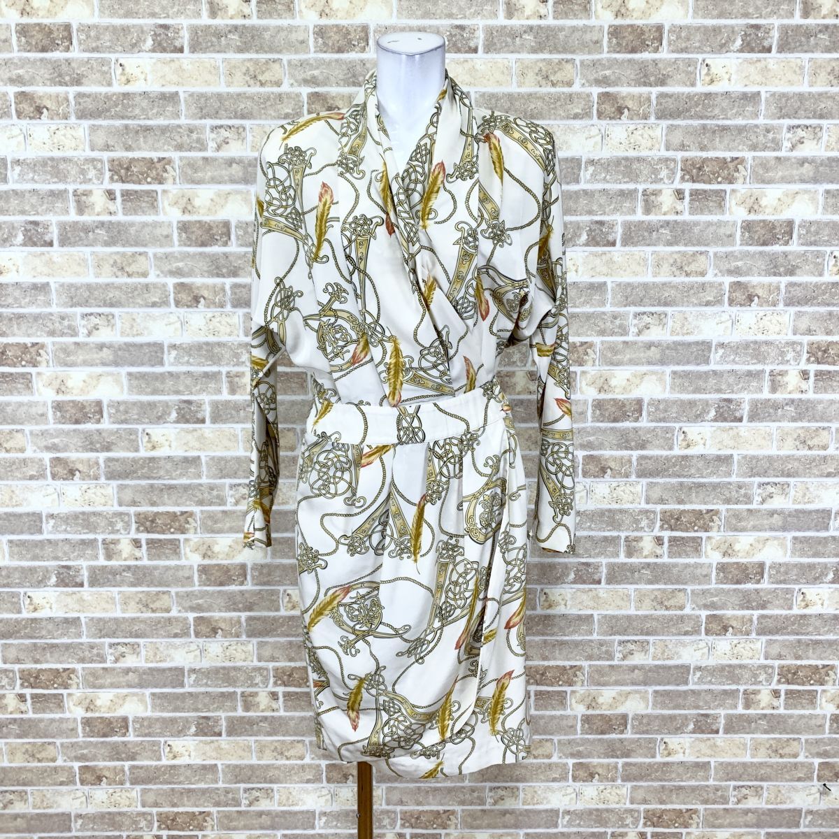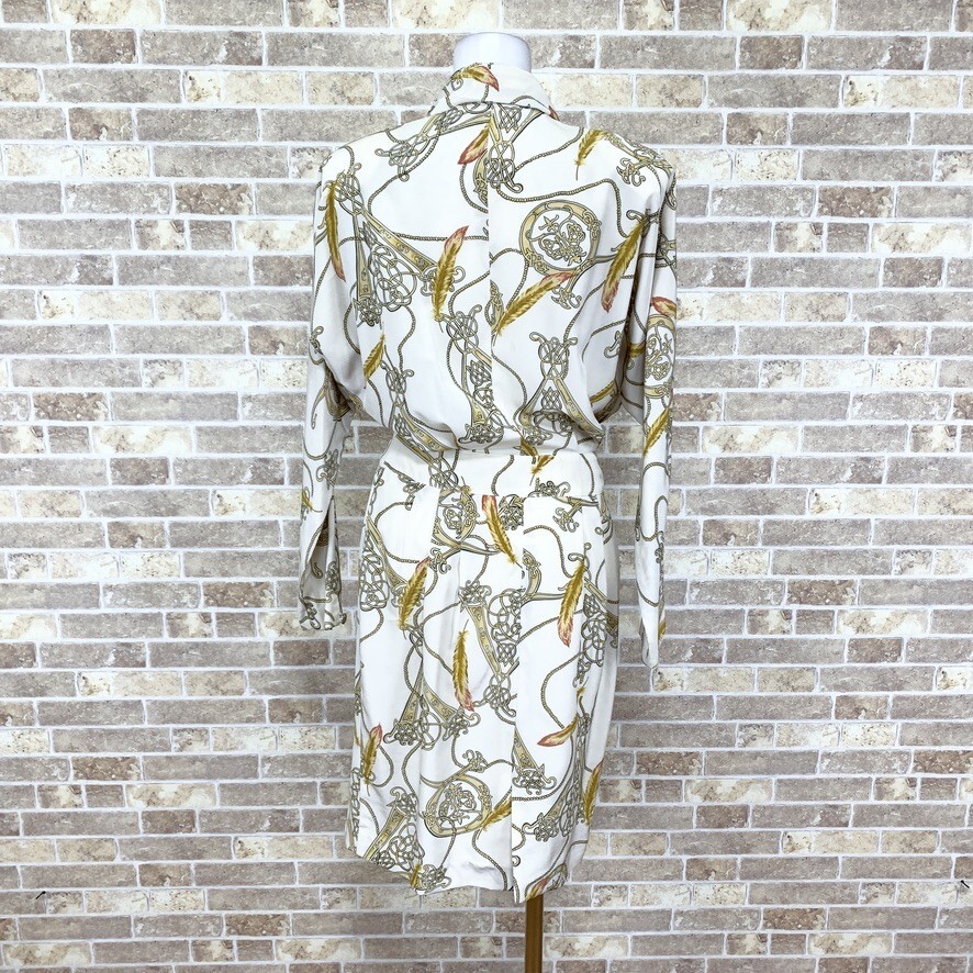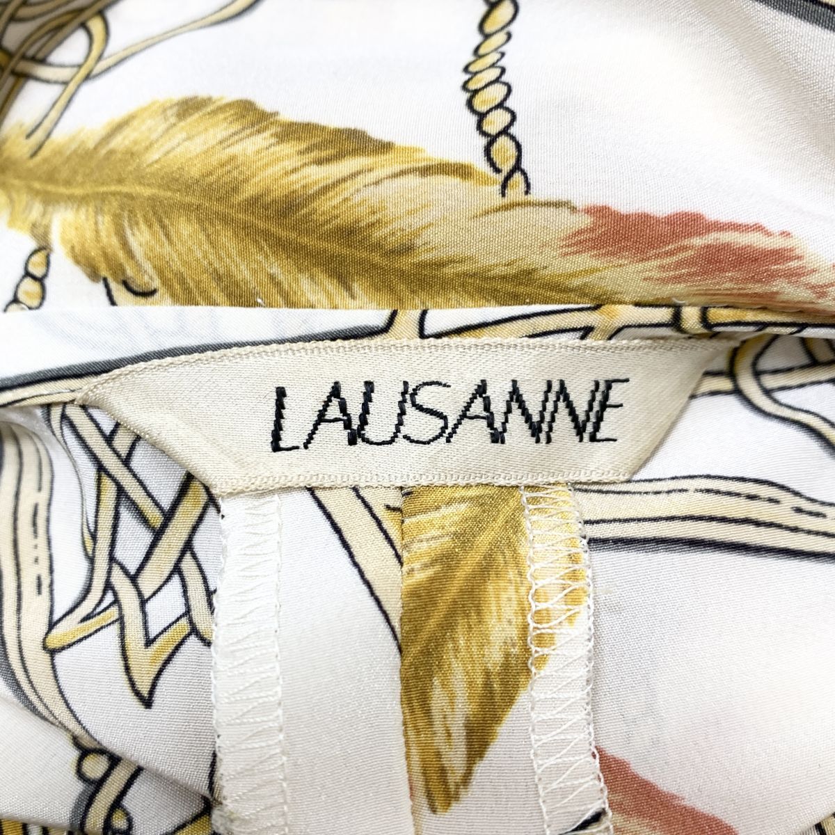 1円 ドレス LAUSANNE 東京ブラウス 長袖ワンピース ベージュ系柄 肩パット カラードレス 発表会 イベント  中古17104