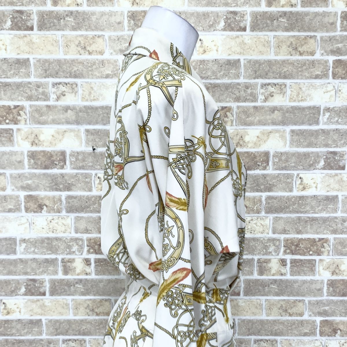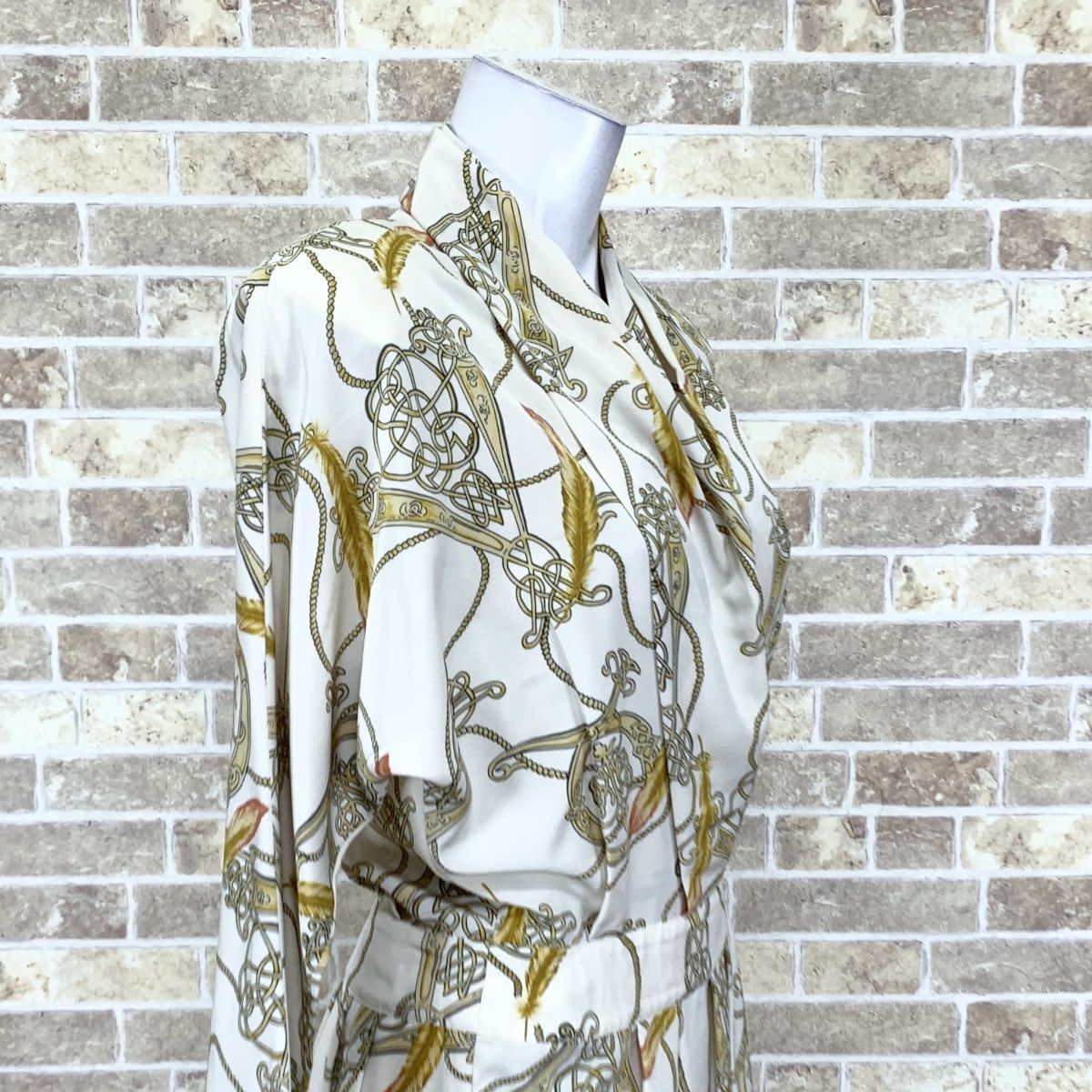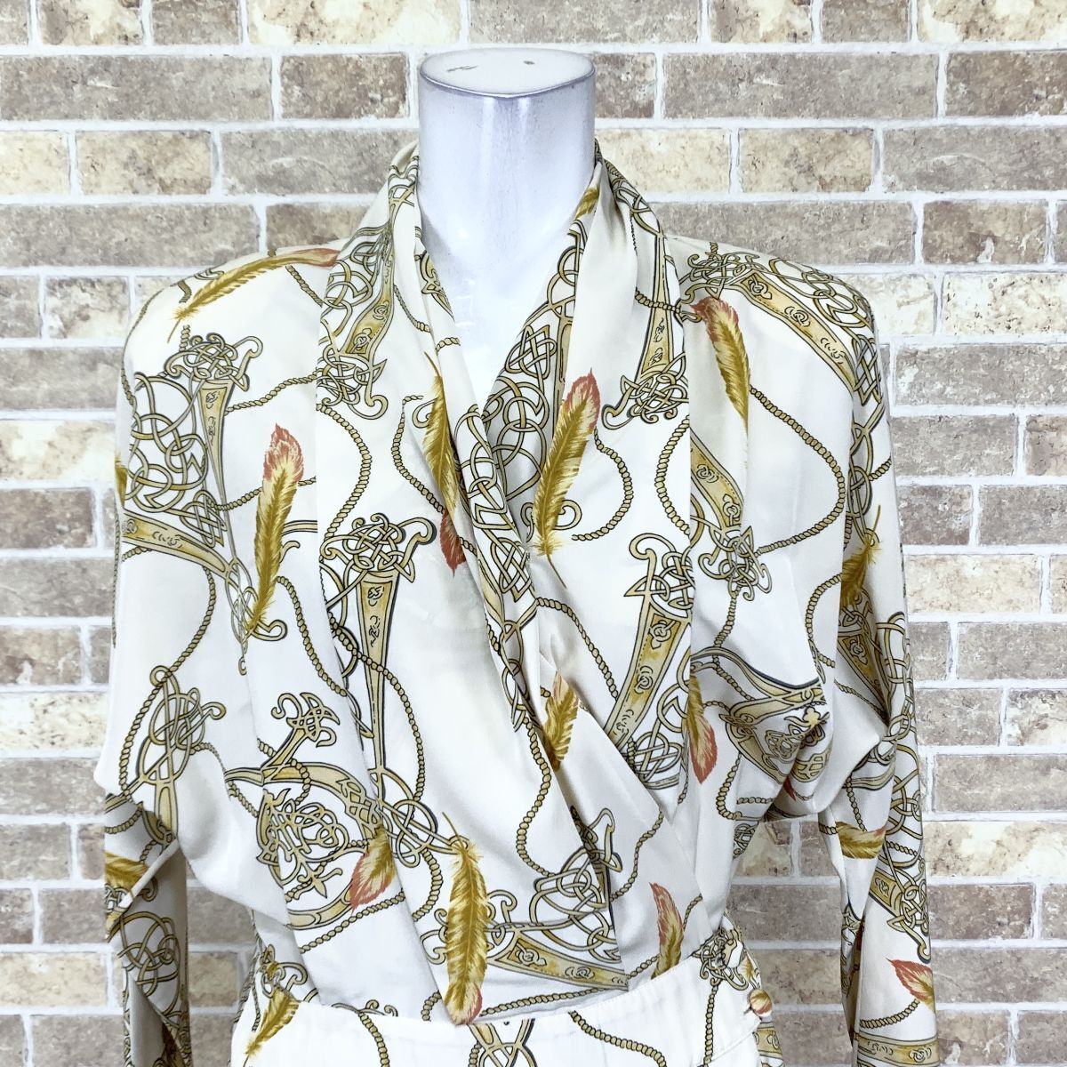 1円 ドレス LAUSANNE 東京ブラウス 長袖ワンピース ベージュ系柄 肩パット カラードレス 発表会 イベント  中古17104