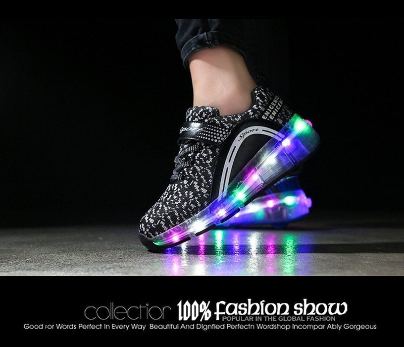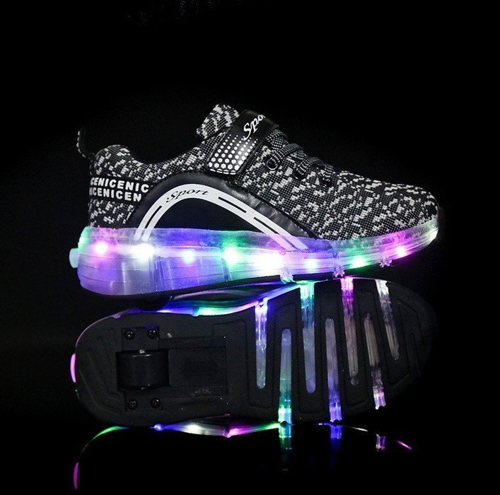1スタ☆光る☆LED ライトアップスニーカー&ローラーシューズ 一体型 【K-166ブラック 22cm】夜間 スケート靴 反射材 ジョギング 自転車