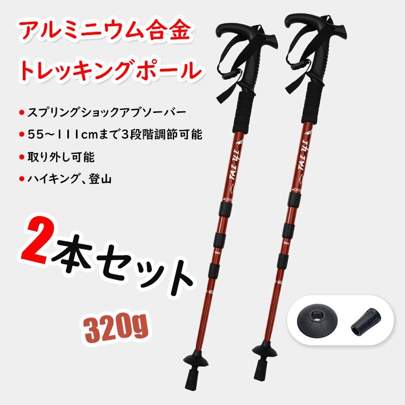 ★アルミ合金製トレッキングポール2本セット、取り外し可能、3段階調整可能、スプリング衝撃吸収機能、アウトドアハイキングや登山用滑り止め装備、高齢者の松葉杖としても使えます。
