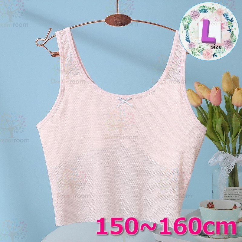 kids 通気性◎ タンクトップ ハーフブラ【L】ピンク 150-160cm 夏 スポーツブラ 子供 ファーストブラジャーインナー K-405-01