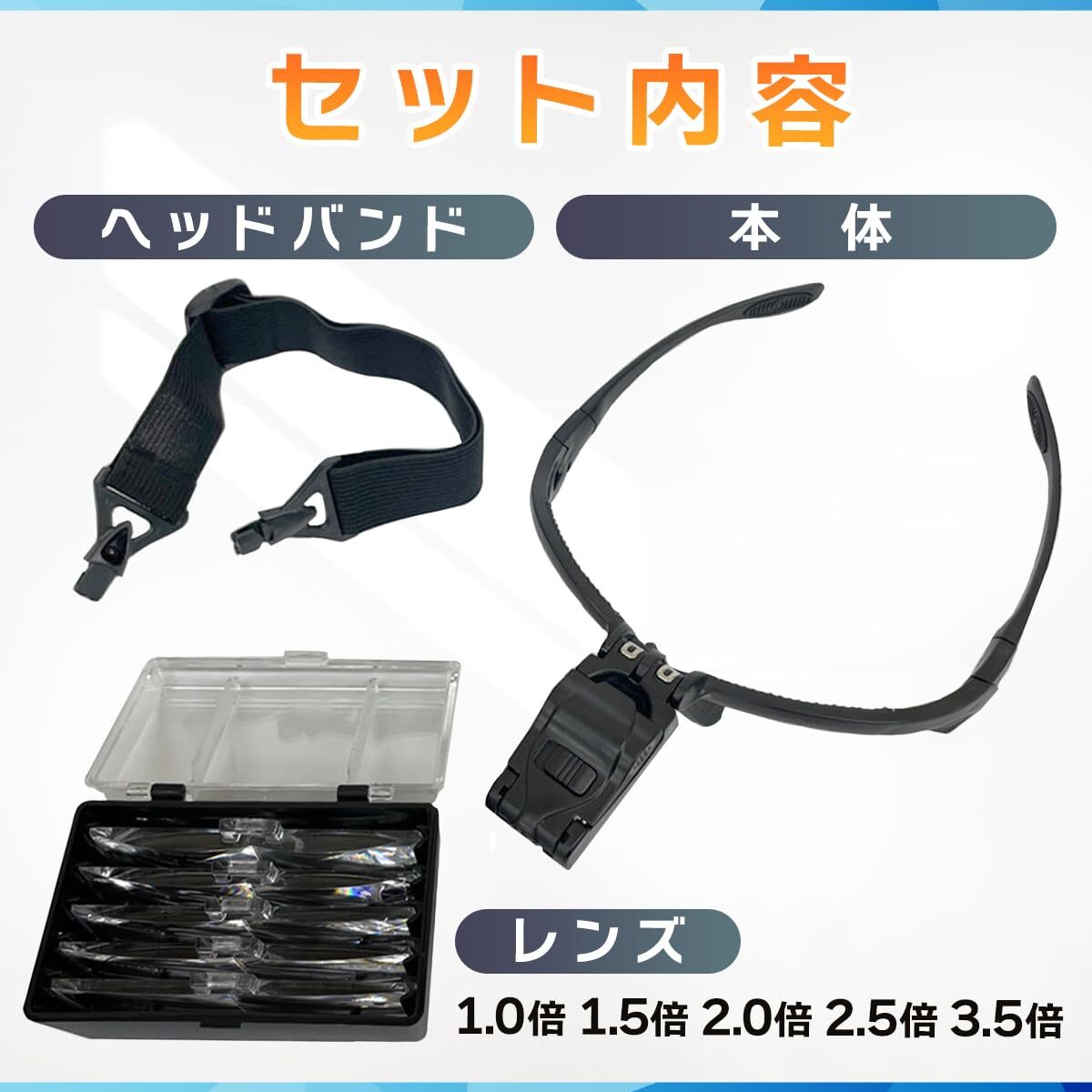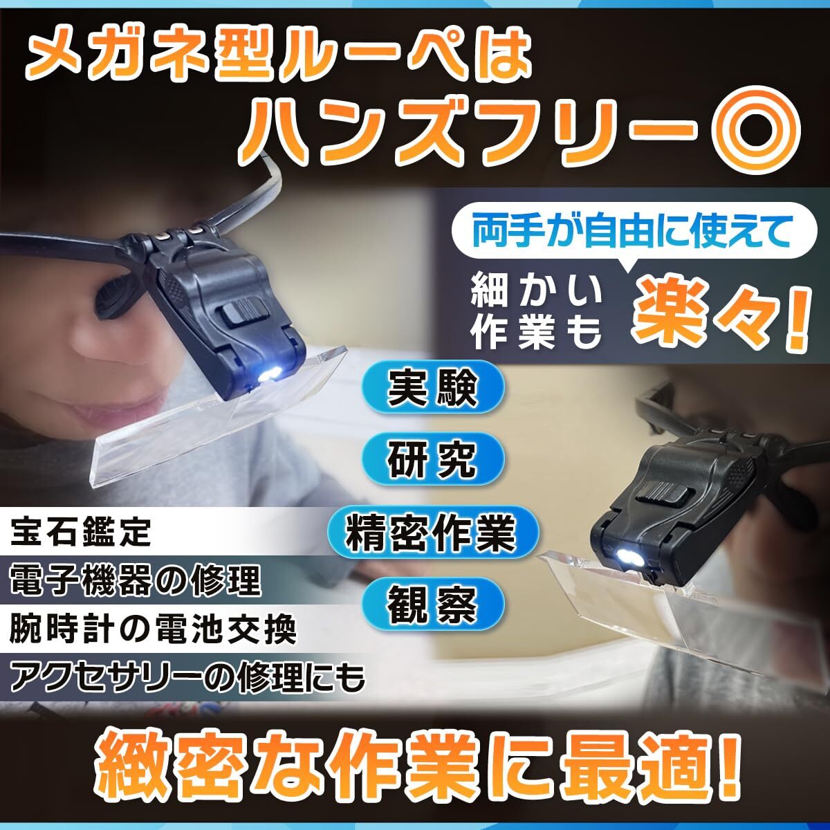 ヘッドルーペ 拡大鏡 メガネ型ルーペ 眼鏡上からかけられる 跳ね上げ式 ライト付 模型 拡大倍率【1.0倍・1.5倍・2.0倍・2.5倍・3.5倍 】