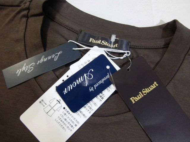 ※土258新品▼ ポールスチュアート 【 M 】 ブラウン系 Paul Stuart 長袖Tシャツ クルーネック 長袖カットソー ロンT 日本製