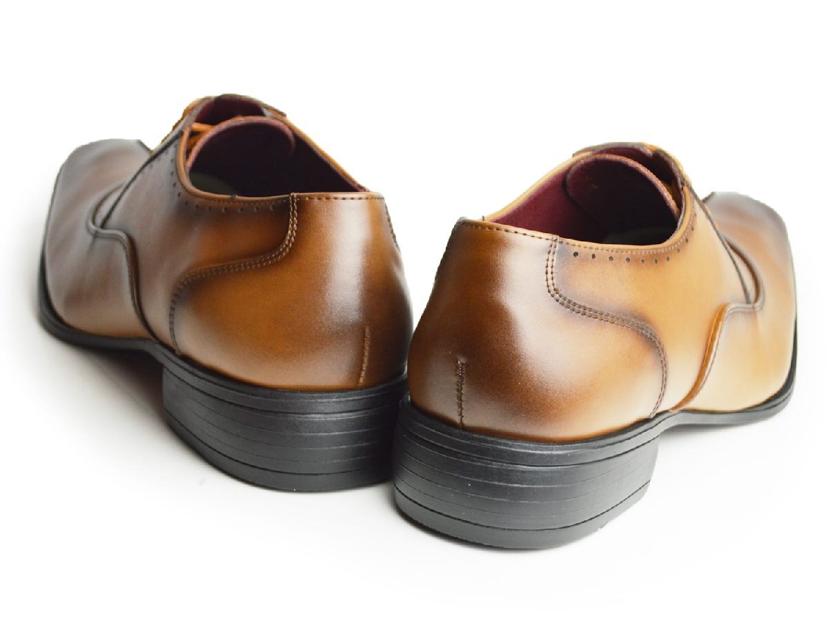 新品■25cm ビジネスシューズ 革靴 レースUP ストレートチップ ライン 脚長 スクエアトゥ ロングノーズ 2E 日本製 フォーマル 紳士靴