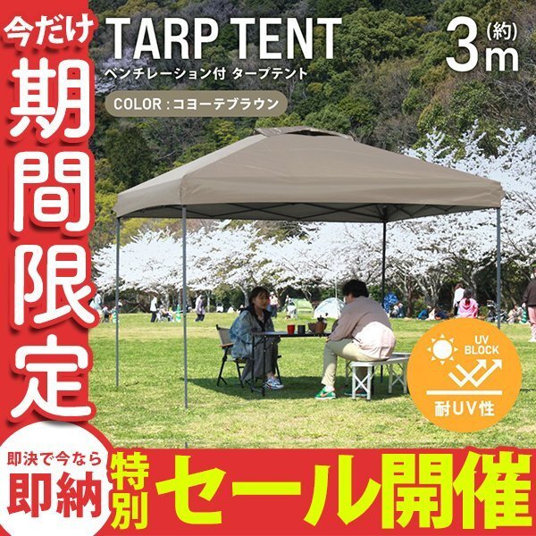 | 強い日差しでもこの3m×3mのタープテントは快適な日陰を作ってくれます! |
