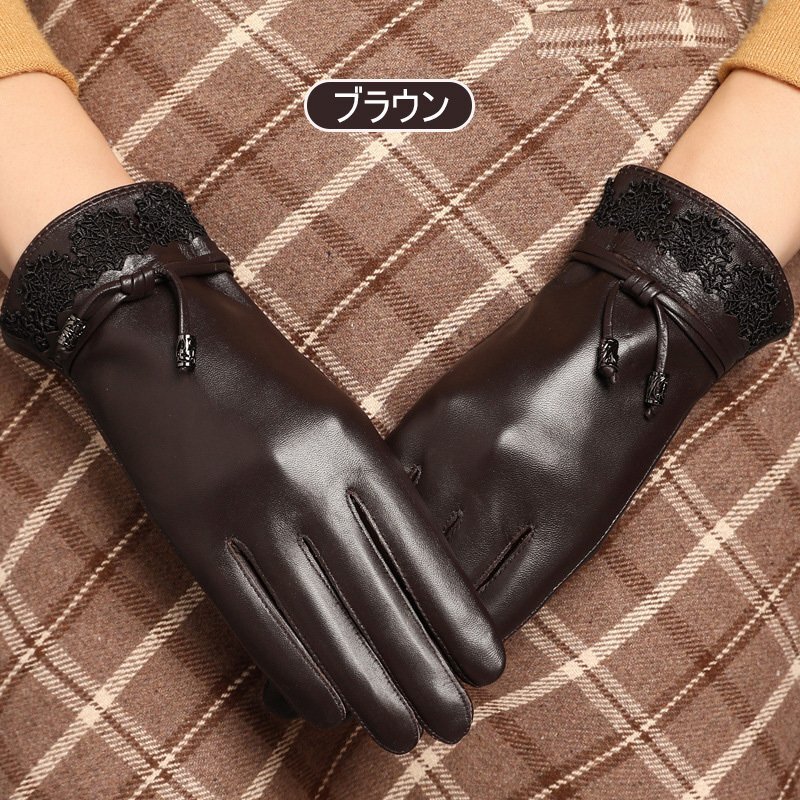 羊革 手袋 レディース レザーグローブ スマホ タッチパネル対応 シープスキン 女性 防寒 防風 運転 防寒 暖かい 柔らかい M/L ☆ブラウン