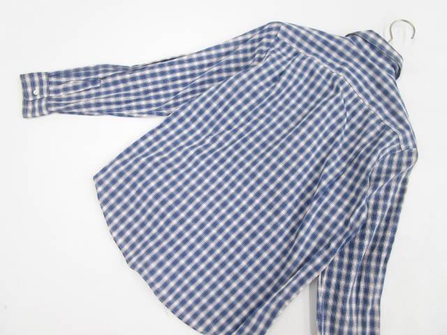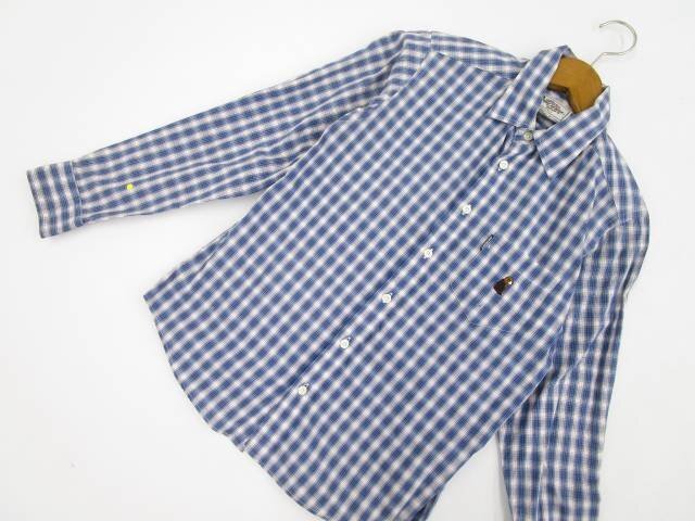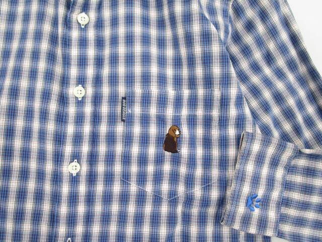 長袖 シャツ M ホワイト×レッド×ブルー チェック柄&犬の刺しゅう 【メール便可】