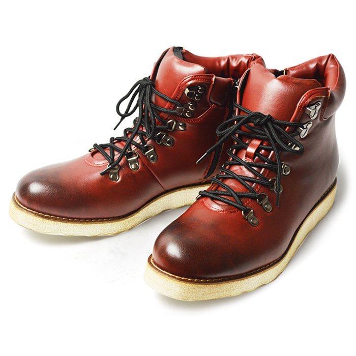 新品■28cm ワークブーツ 2.5cmアップ インソール付き ショート丈 マウンテン ブーツ 着脱簡単 サイドジップ 替え紐つき ビンテージ 紐靴