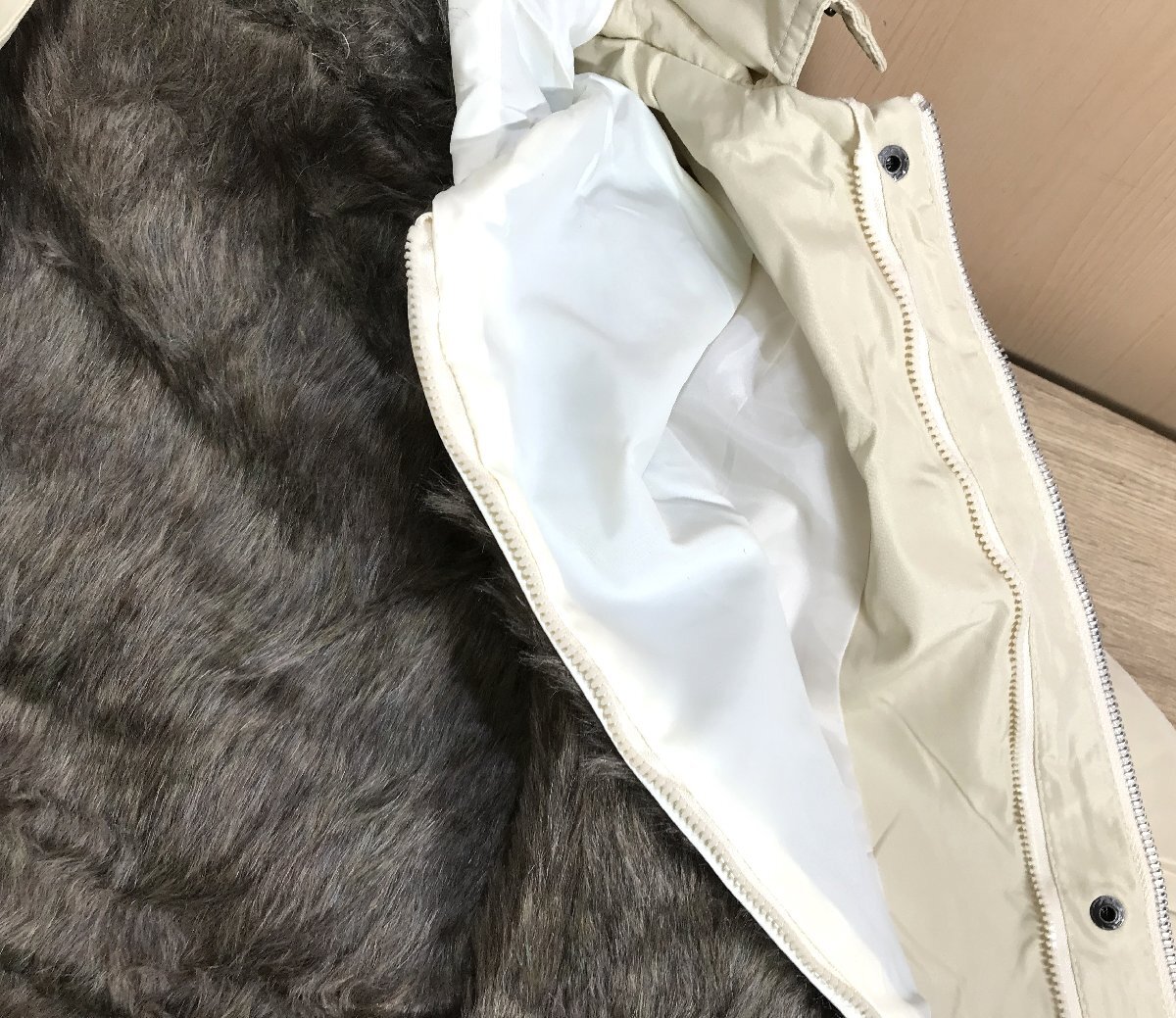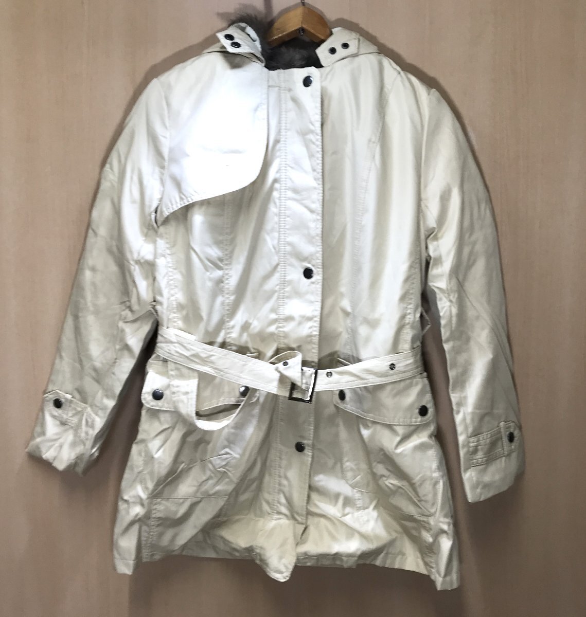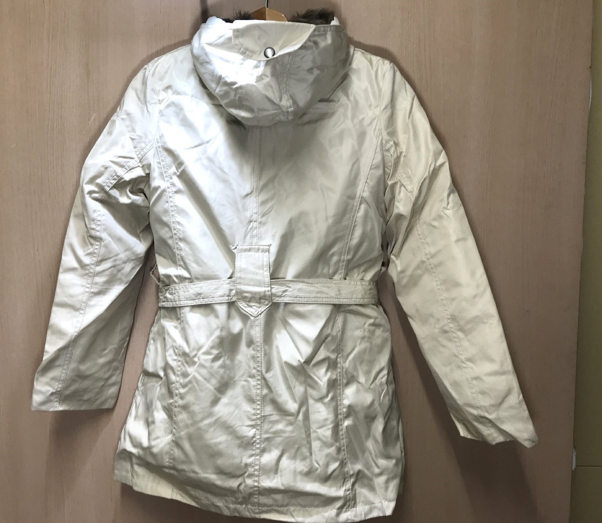【中古】韓国製 ダウンジャケット Lサイズ 白 ファー取り外し可能 レディース ベルト付き