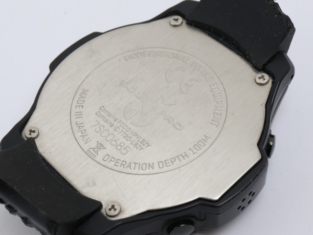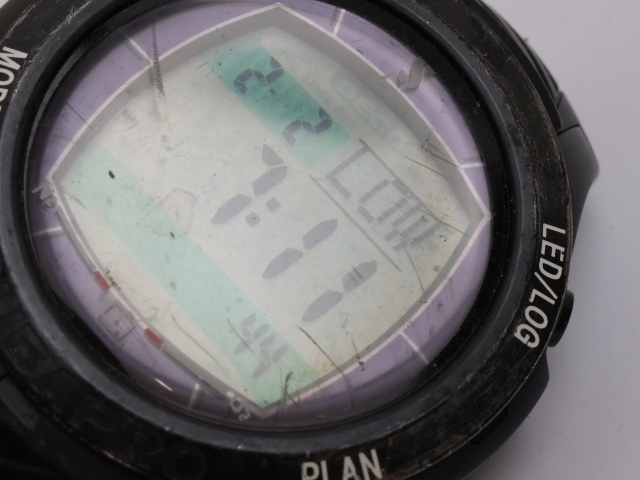 | 商品説明 | 当商品をご覧いただきありがとうございます。 スキューバプロのソーラー充電式のダイブコンピューターになります。 2本セットで本体のみのお品になります。 サイズ | ケース径(ボタン含まず) 約48mm | 厚み 約15mm ベルト取り付け幅 約22mm 状態 | 動作品になりますが二次電池が弱く充電後直ぐに充電が不十分となるため二次電池交換の必要があります。 | 使用に伴う小傷や擦れ傷があります。 状態は画像を参考にお願いします。 付属品 | 本体 | |