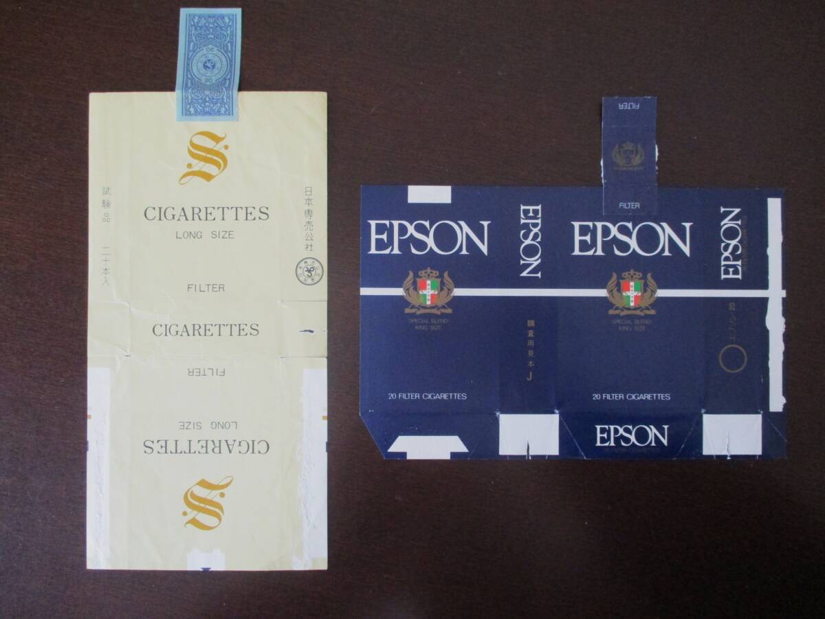 たばこパッケージ「試験品(CIGARETTES) 調査用見本(エプソン)」2種組 封緘紙付き