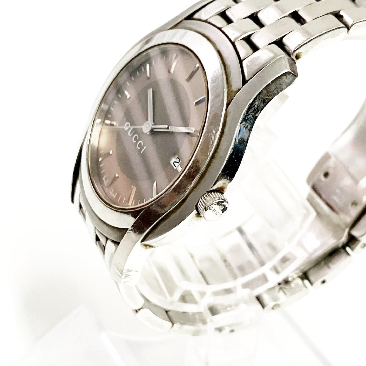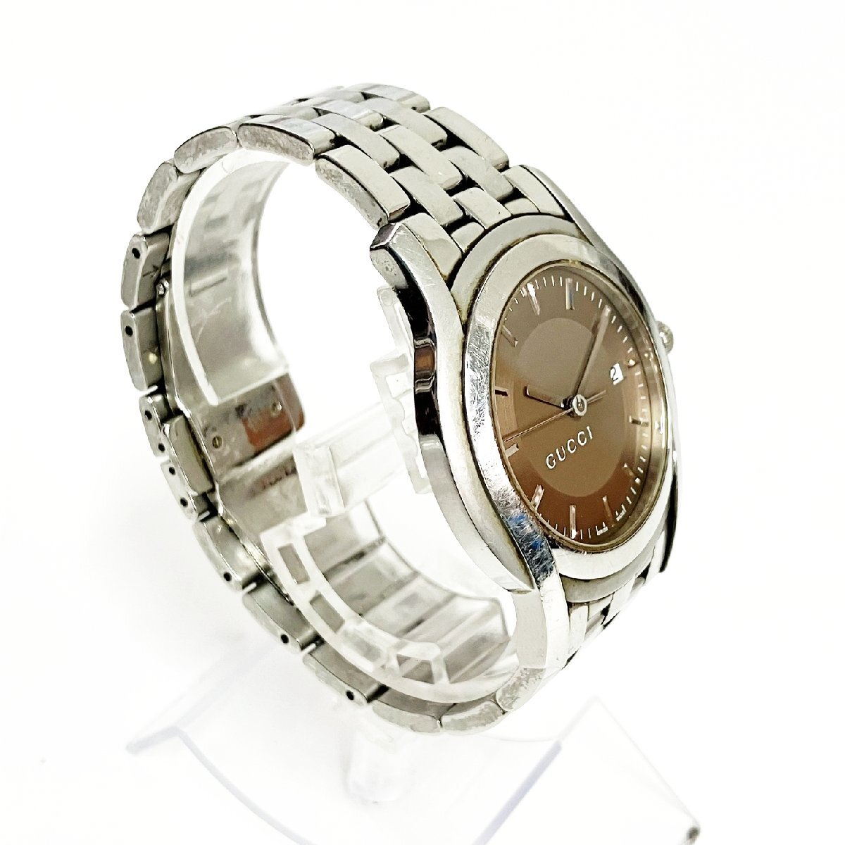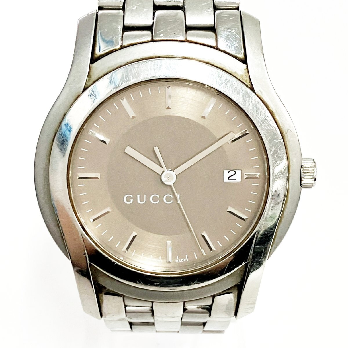 【1円スタート】GUCCI グッチ 5500XL デイト SS ブラウン系文字盤 クオーツ メンズ腕時計 521282