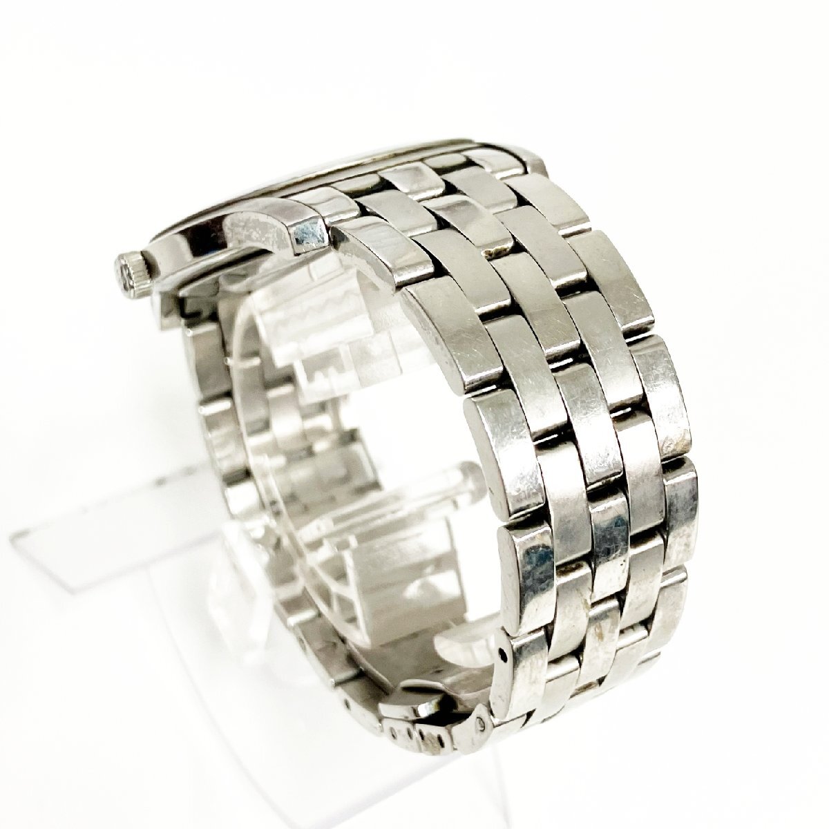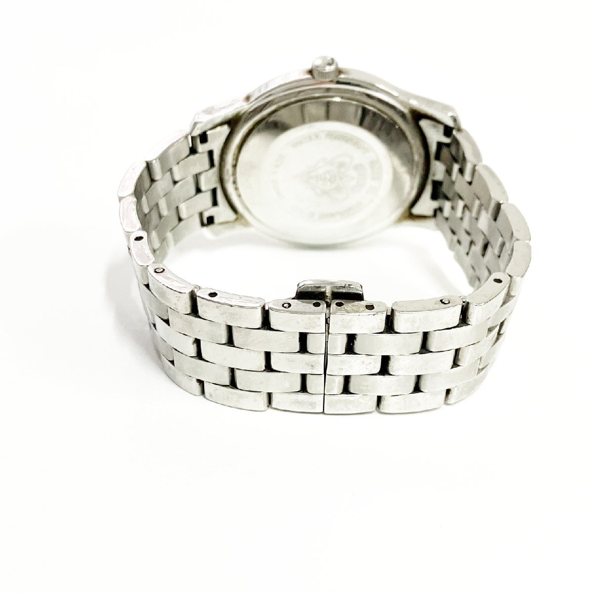 ※裏蓋が若干浮いています。ベルトの留め具がゆがみややぐらつきます。全体的にダメージあり。