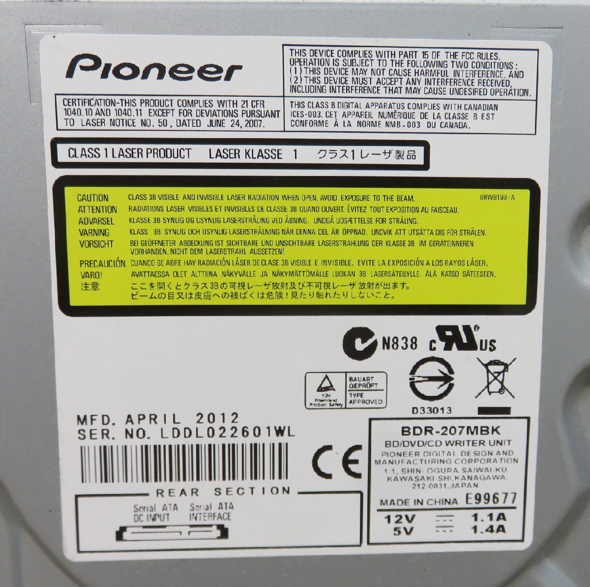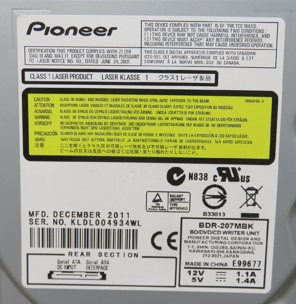 Pioneer ブルーレイドライブ(BDR-207MBK)です。