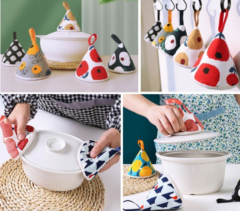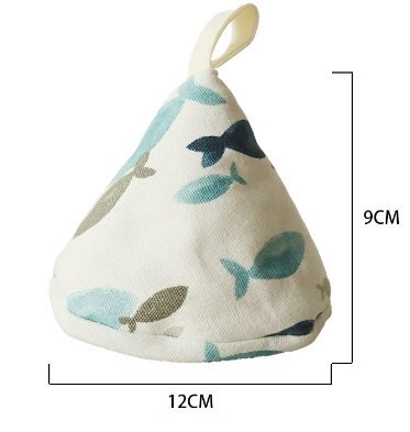 【vaps_4】三角 鍋つかみ 《魚柄ライトブルー》 両手鍋 ストウブ鍋 北欧風 おしゃれ かわいい 耐熱 ミトン 取っ手 鍋蓋 厚手 手袋 送込