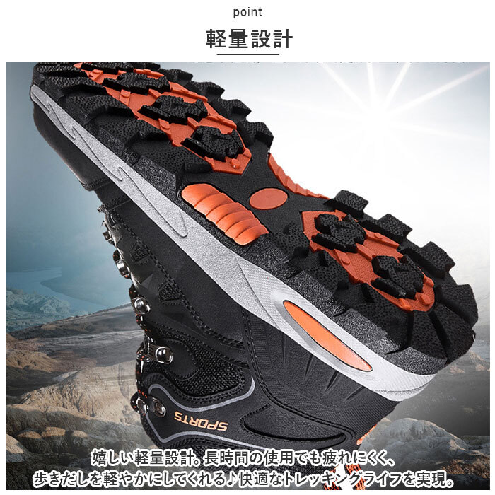 | 商品説明 | ・・山登りやアウトドアに!機能的で歩きやすい「トレッキングシューズ」が登場 ・【耐摩耗性】 ・耐摩耗性抜群。登山などの厳しい環境でも長く使える、耐久性に優れた確かな品質。 ・【軽量設計】 ・嬉しい軽量設計。長時間の使用でも疲れにくく、歩きだしを軽やかにしてくれる♪快適なトレッキングライフを実現。 ・【滑りにくい】 ・グリップ性の強いソールなので、不安定な山道やアウトドアシーンでも滑りにくく、安定した歩行をサポート。 ・【衝撃を吸収】 ・しっかりとしたソールとクッション性のあるインソールで足への衝撃を吸収。歩きやすさを追求した設計。 ・【シンプルデザイン】 ・シンプルだけど、オレンジの配色が目を引くオシャレなデザイン。機能性だけでなく、見た目も優れた一足。 ・【サイズ展開あり】 ・女性も男性も履けるサイズ展開あり。カップルや登山仲間でお揃いにするのもGOOD♪ |