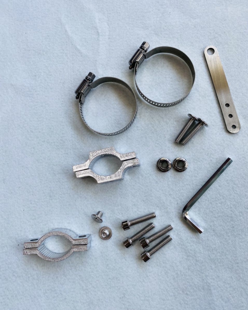 各種取り付けブラケット付きですのでハーレー、レブル250、カブ、ドラッグスター、sr400、スティード、などなど様々なバイク、お好きな位置に取り付け可能です☆