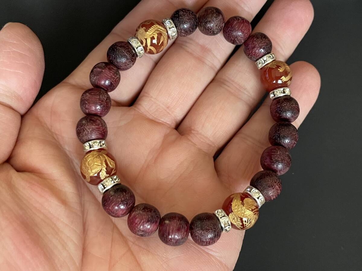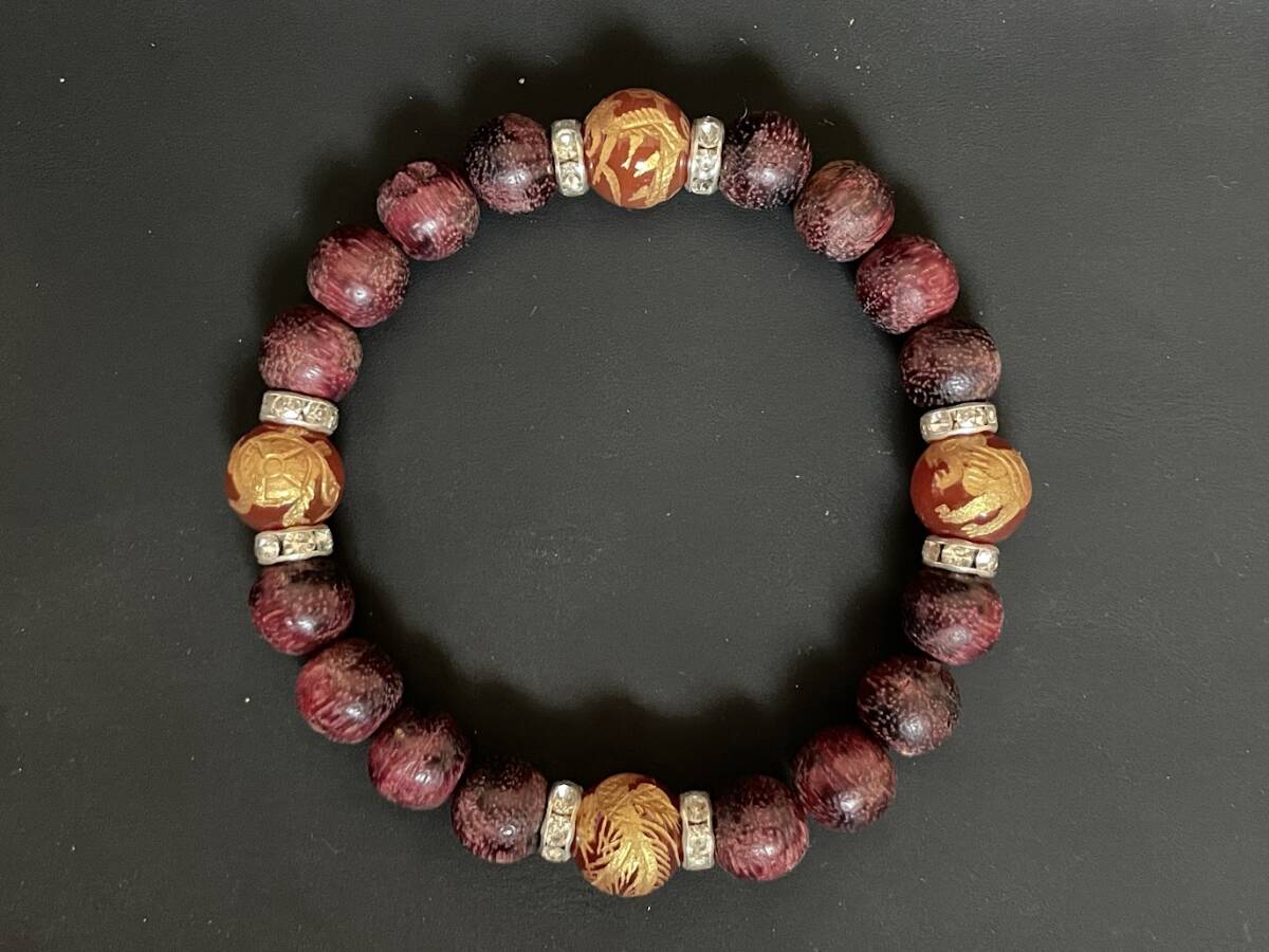 <パープルハート+カーネリアン四神ビーズブレスレット>