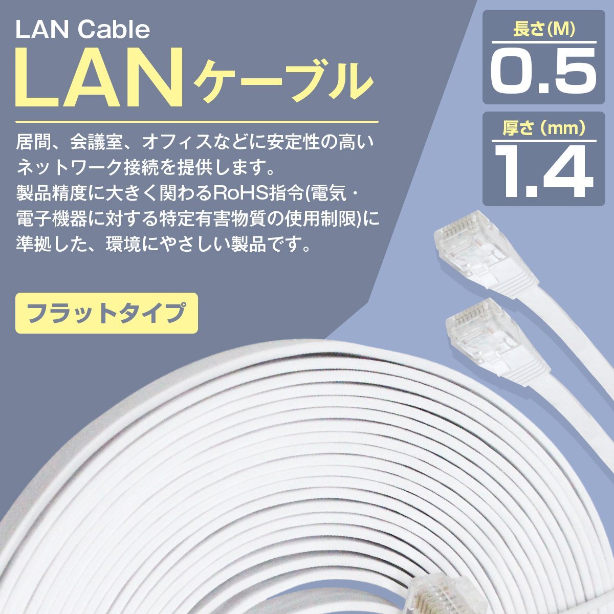 【送料220円】CAT6 カテゴリ6 薄型 フラット LAN ケーブル 0.5m 50cm 白 ホワイト パソコン インターネット PC WiFi ルーター 無線 有線