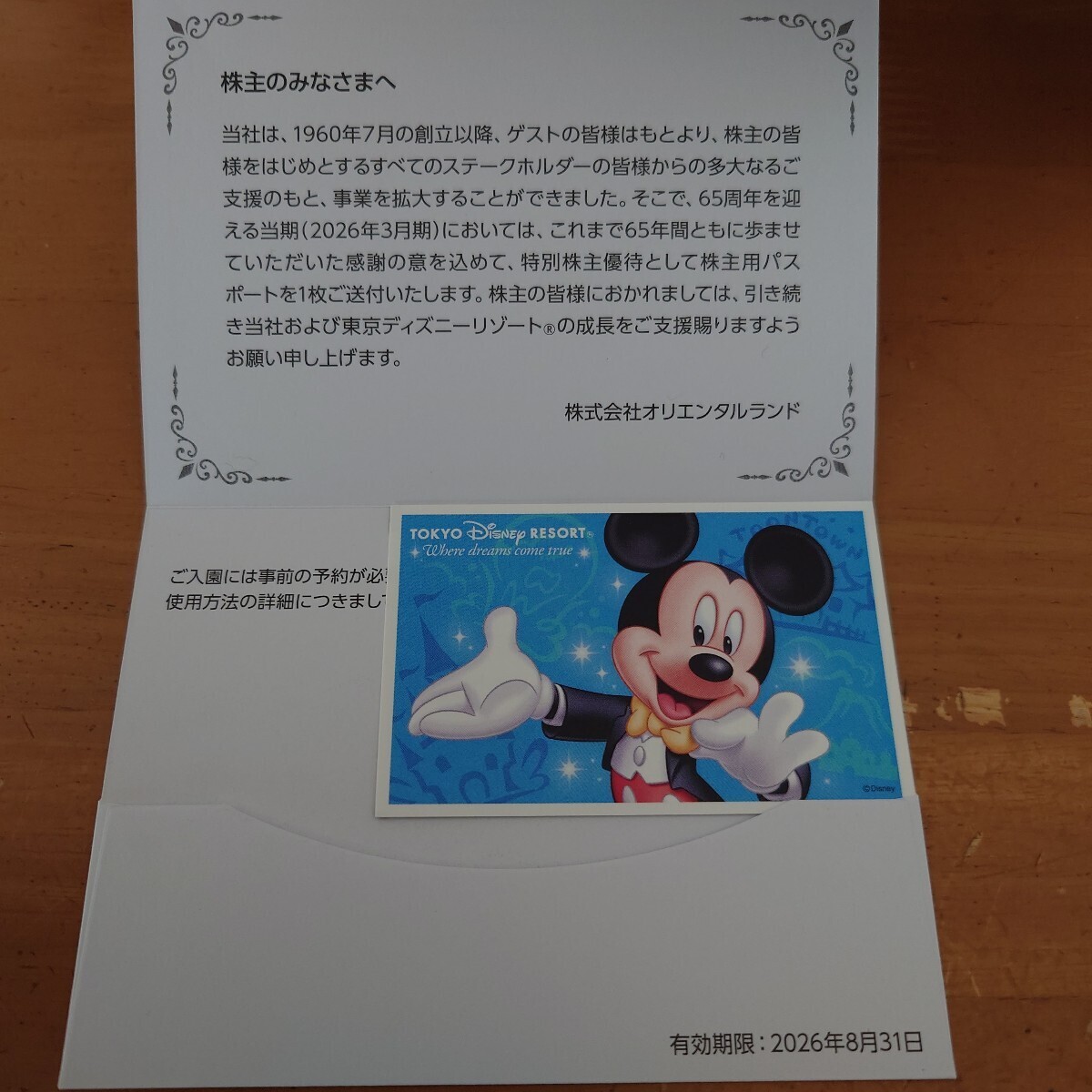 ディズニーリゾート 特別優待パスポート1枚です。 有効期限は2026年8月31日